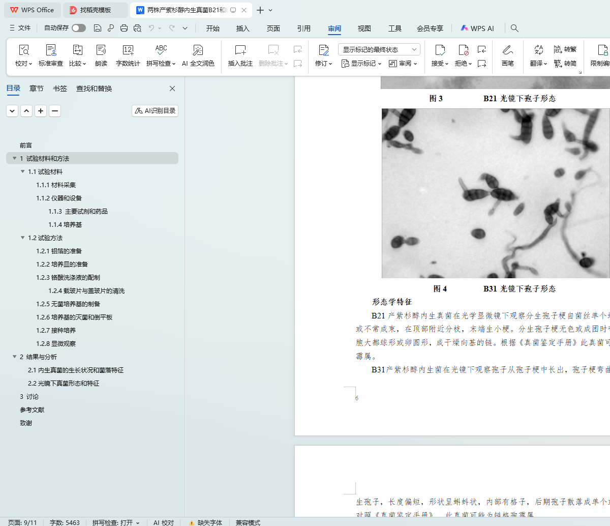 两株产紫杉醇内生真菌B21和B31形态的初步鉴定