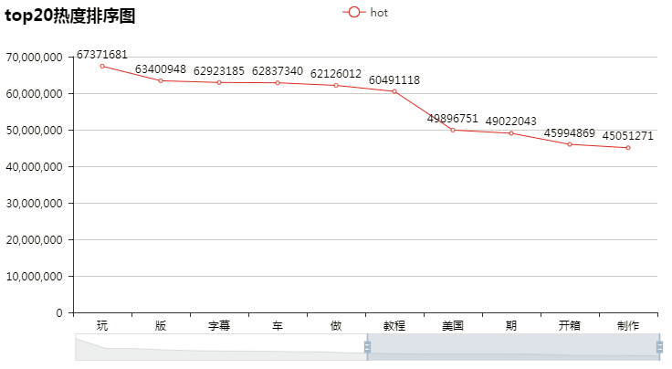 After deeply analyzing the video site's video popularity, the system collected and processed the video title and playing amount.The system includes the data acquisition, data preprocessing, data analysis, data visualization of the entire big data processing process. The data collection process collected a total of 700,000 videos for 18 days from the video website. The data preprocessing process segmented the video titles and extracted keywords from the word segmentation results. The data analysis process identified the extracted keywords. , statistics and heat calculations, clustering key words 18-day heat growth model, performing polynomial regression and evaluating regression results. The system has the characteristics of good scalability, high portability, easy maintenance, user-friendliness, and fast data collection and processing.