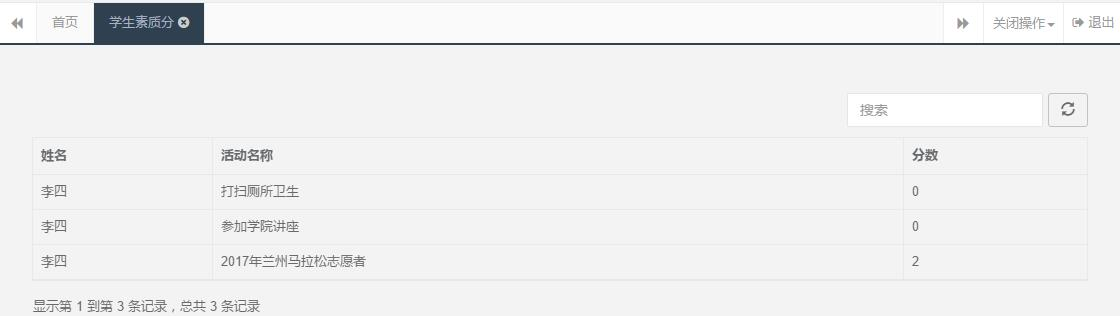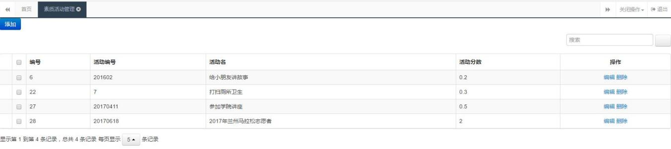本文通过以上方法实现了高校综合素质评价的基本功能:(1)通过对成绩的录入得出学生的绩点。(2)通过对活动的管理,实现素质加分的功能。(3)通过权限的配置整个评价过程遵守公平公正的管理制度。