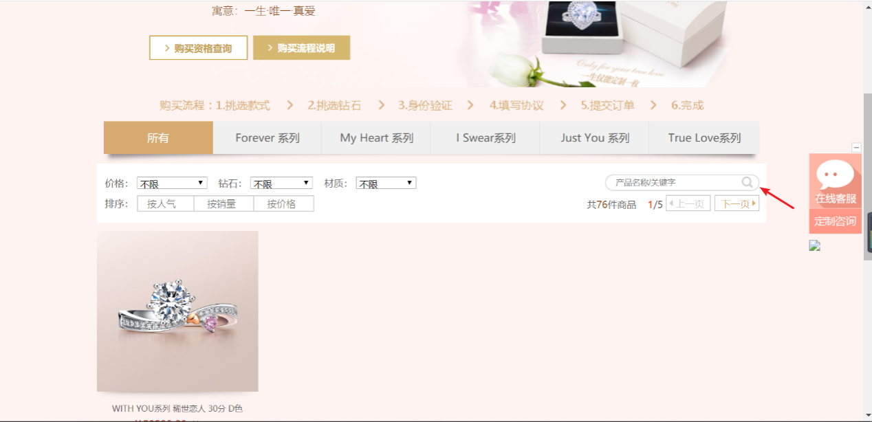 目前,在实际生活中,依托在其他网购平台的钻戒卖方所提供的商品质量与材质都难以得到保障,即便各大平台加大了打假力度,但是依然存在隐患。笔者建立了网上钻戒商城,此商城具有简洁的页面,选购起来也非常的方便,并且此商城能根据每个用户的喜好进行分类以及推荐,对消费者来说,即放心又省心并且还省力,又确保了商品的真实性!