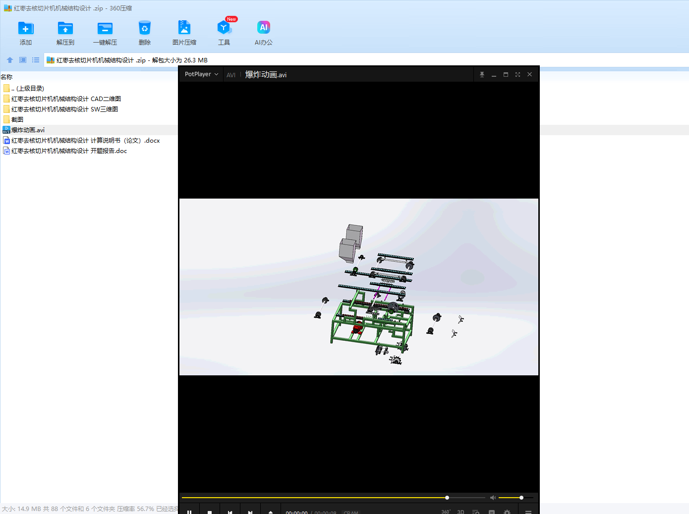 为有效解决红枣去核切片机存在的切片厚度不均、破碎率高、枣核残留等问题,同时应对红枣精深加工过程中劳动强度大、自动化程度低、造碎率大等技术难题,本研究设计了一种新型红枣去核切片一体机。该一体机能够一次性完成红枣的自动定向排序、夹紧、去核以及切片等多道工序。具体而言,采用槽轮机构实现间歇上料、夹紧与切片操作;通过定向传送链、毛刷和摩擦板的相互作用达成红枣的定向排序;利用两排平行放置的链实现红枣的定位与夹紧;去核装置运用对心曲柄滑块机构;切片则采用刀具固定、刀槽式送料轮旋转的方式。经实际测试,所设计的新型红枣去核切片机的有序上料率超过 95%,去核与切片的破碎率低于 5%。该设备具有结构简单、定向效果佳、制造费用低、生产率高以及适应性强等显著优势。