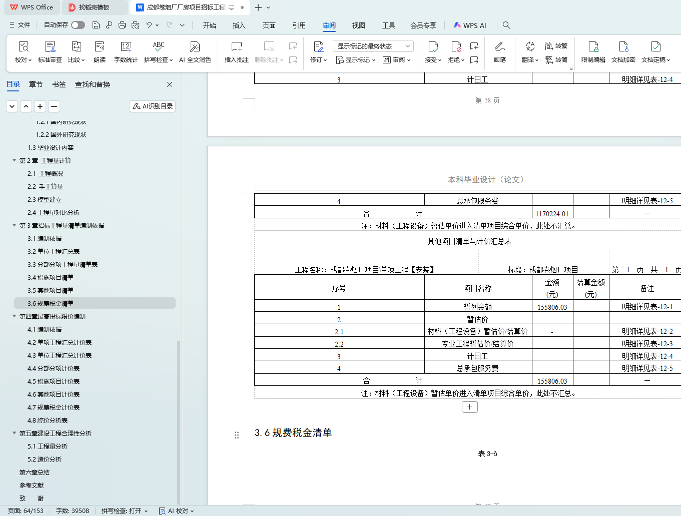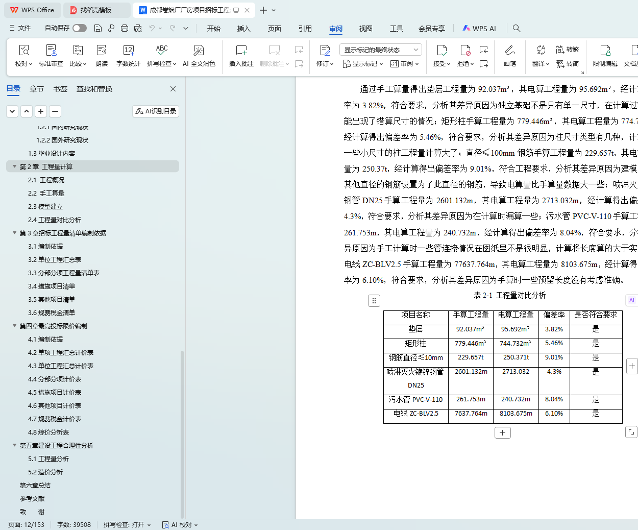 With the rapid development of Chinese construction industry in recent years, in order to meet the needs of bidding pricing, the implementation of bill of quantities pricing has become an important measure for the reform of the construction industry contract pricing, the use of bill of quantities pricing can reflect some costs of the construction projects, so that it is easier for enterprises to quote prices by themselves and maintain the fair competition environment. Based on the plant project of Chengdu Cigarette Factory as the research basis, according to the current bidding situation and the actual conditions of the plant project, Guanglian model establishment, manual calculation, comparative analysis of manual calculation, and compilation of bidding quantity list and maximum bid limit price. This topic is the study of bidding quantity list and maximum bid limit price. Through this graduation project in the process of Chengdu cigarette factory plant project design, strengthen the modeling and calculation ability, improve the understanding and application of the bidding bill of quantities and the maximum bid limit price, let oneself in this process will be theoretical knowledge in practice, enhance the hands-on ability, familiar with the preparation of bidding bill of quantities and the maximum bid limit price of the whole process.