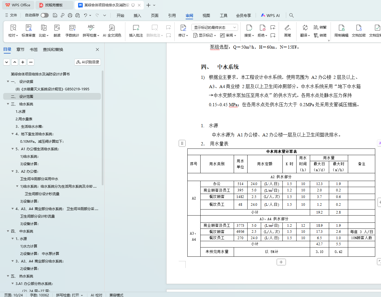 本设计范围:本基地室内、外给排水及消防工程设计。