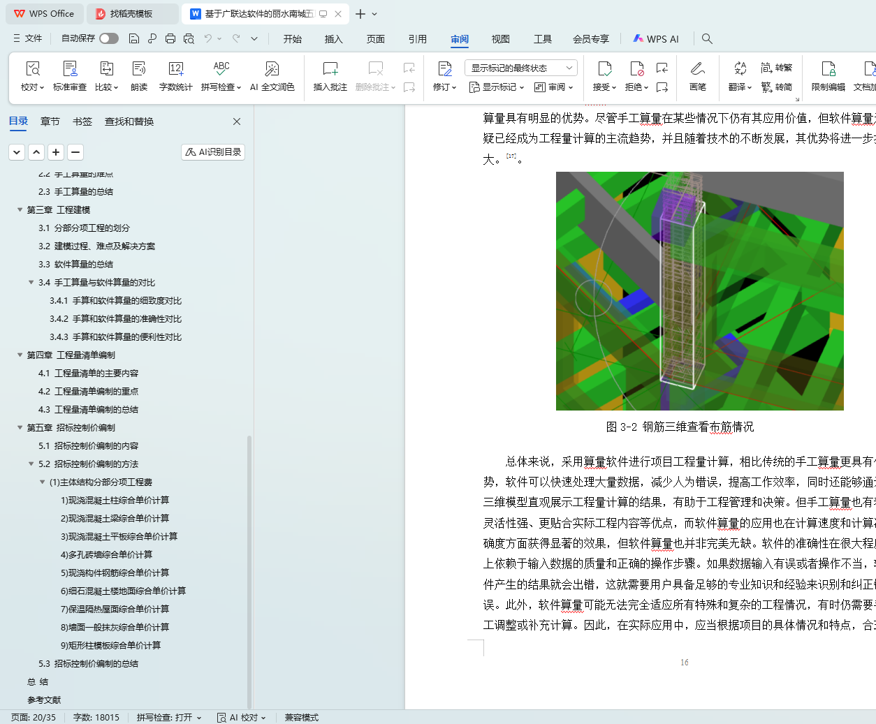 During the research process, based on the construction drawings and structural construction drawings of the project, and strictly in accordance with relevant specifications and quota requirements, Guanglianda GTJ2025 calculation software was used to calculate the engineering quantities, and the calculation results were systematically sorted and summarized. Subsequently, with the help of Guanglianda cloud pricing software 2022, the preparation of the engineering quantity list and the setting of corresponding quotas were completed.