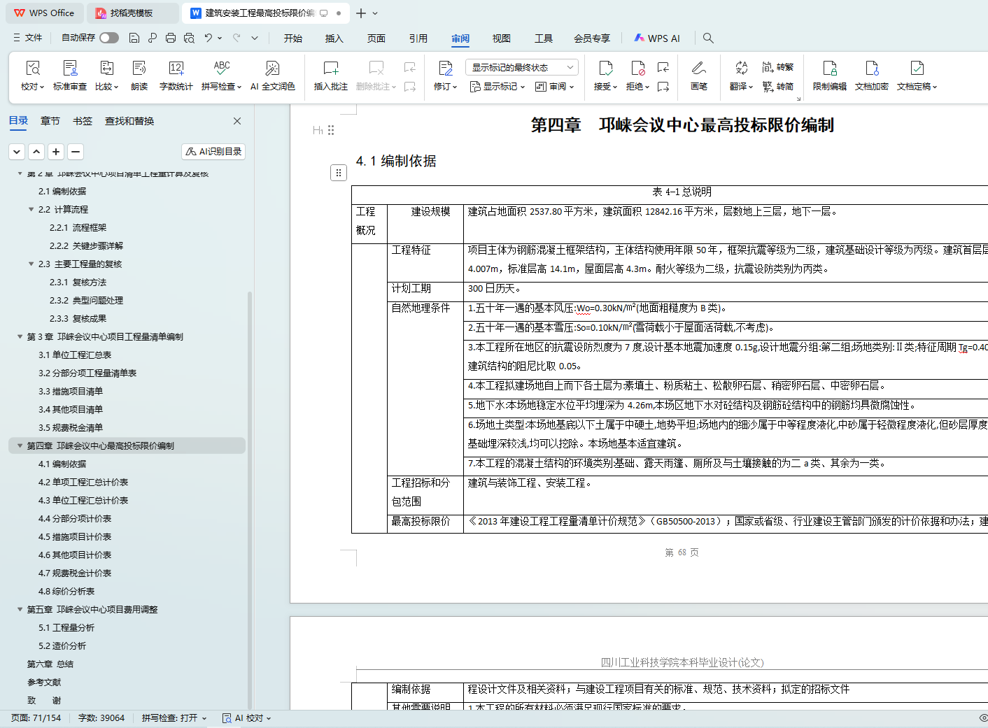 随着我国建筑行业近些年的高速发展,为满足建筑行业内招投标的需求,推行工程量清单计价模式已成为目前建筑工程行业发包计价改革的重要措施,采用工程量清单计价方式能反应建设项目的一些成本,以便于各企业自行报价和维护公平竞争的环境。本文以邛崃会议中心项目为研究依据,按照目前我国招投标情况、该项目实际情况进行广联达模型建立、手工算量、手电算对比分析、编制招标工程量清单和最高投标限价。本课题研究的是招标工程量清单和最高投标限价。通过本次毕业设计在对邛崃会议中心项目设计的过程,加强建模和算量能力,提升对招标工程量清单及最高投标限价编制的理解和应用,让自己在这个过程中将理论知识用于实践当中,增强动手能力,熟悉掌握编制招标工程量清单及最高投标限价的全过程。
