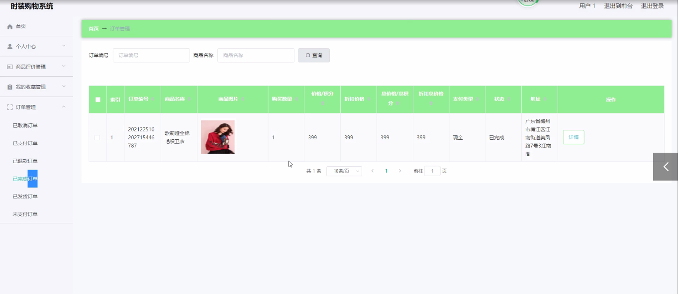 The database of this fashion shopping system is mysql, which is developed with springboot framework. In the design process, it fully ensures the good readability, practicability, expansibility, universality, easy to maintain, easy to operate and concise page of the system code.