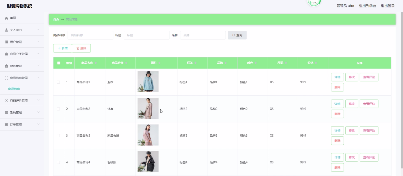 Key words: fashion shopping system, springboot framework, MySQL database, Java technology