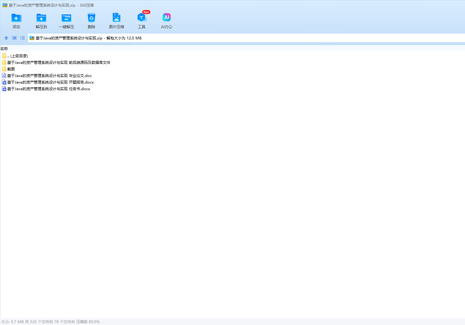 In the traditional asset management mode, organizations such as enterprises and universities face problems such as low efficiency in asset inventory, difficulty in information tracking, and low resource utilization. This graduation project aims to build an asset management system integrating asset information management, asset inventory, transfer and scrapping, and data statistical analysis based on the Java ecosystem technology stack and the front-end and back-end separation architecture of Spring Boot + Vue. The system includes a user module, an asset information management module, an asset process management module, and a data statistics module, meeting the core needs of different roles in asset management and achieving visual management of the entire asset life cycle. The system features complete functions and convenient operation, complies with relevant technical specifications, meets requirements in terms of response speed, concurrent capacity, and data capacity in terms of performance, and adopts measures such as identity authentication, permission control, and data security in terms of security. This design provides a digital solution for asset management for enterprises, universities, and other organizations, promotes the informatization upgrade of asset management, and also offers a reference for the development of similar resource management systems.