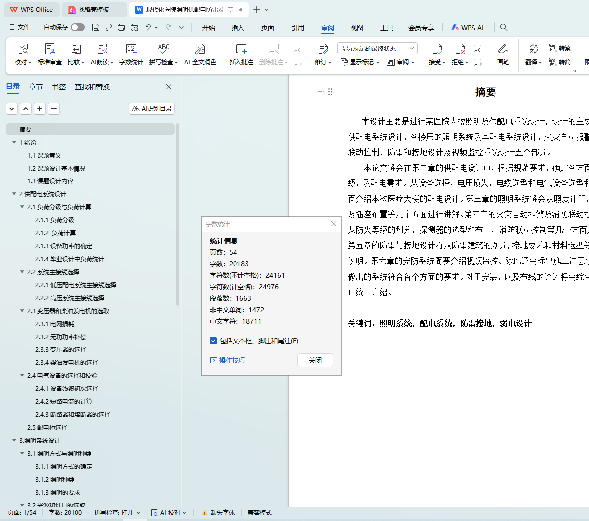 关键词:照明系统,配电系统,防雷接地,弱电设计