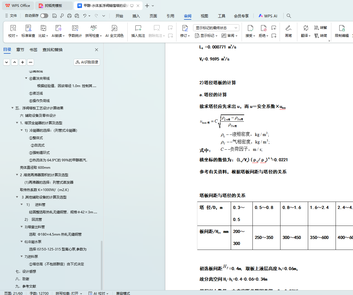 ◆4.2精馏段塔径塔板的实际计算…………………….22