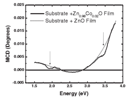 (1)室温MCD发生在ZnO能带边缘。在3eV以上观察到法拉第效应,在这个范围ZnO薄膜仍然是透明的。