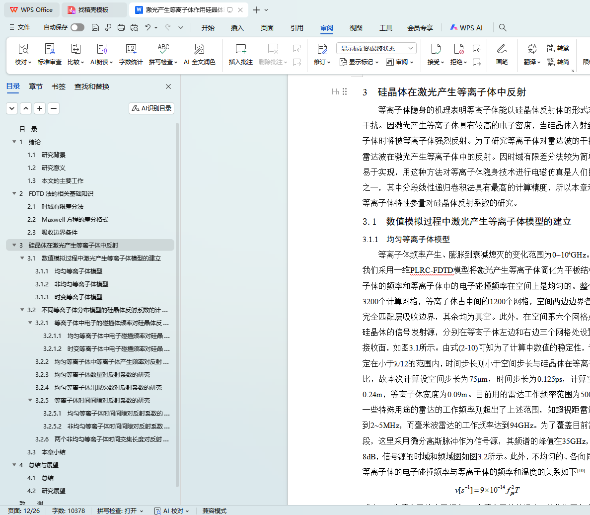 Keyword: laser-induced plasma FDTD electromagnetic wave reflection coefficient