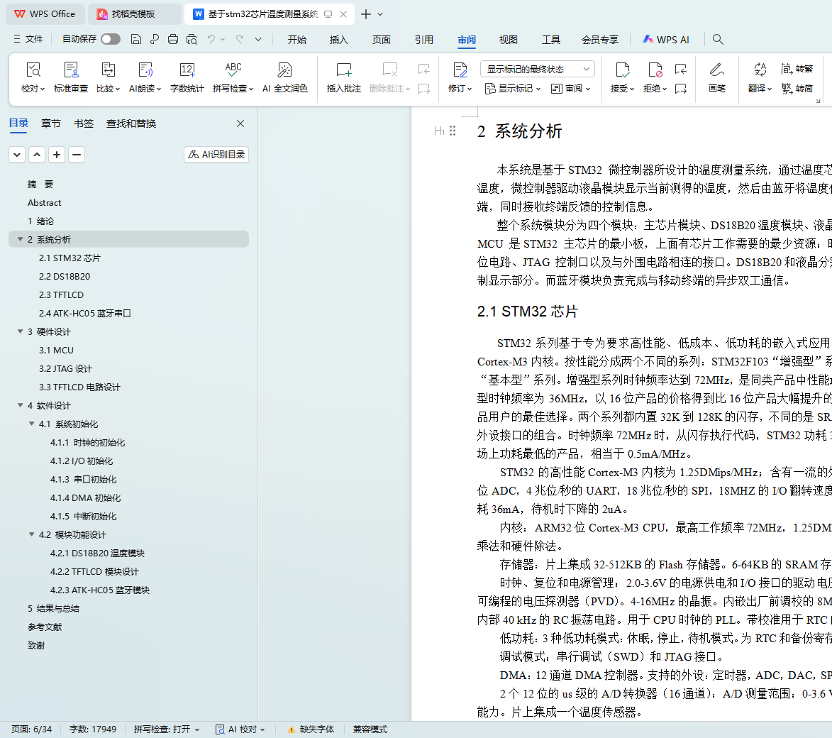 关键词:STM32;蓝牙;DS18B20;温度;TFTLCD