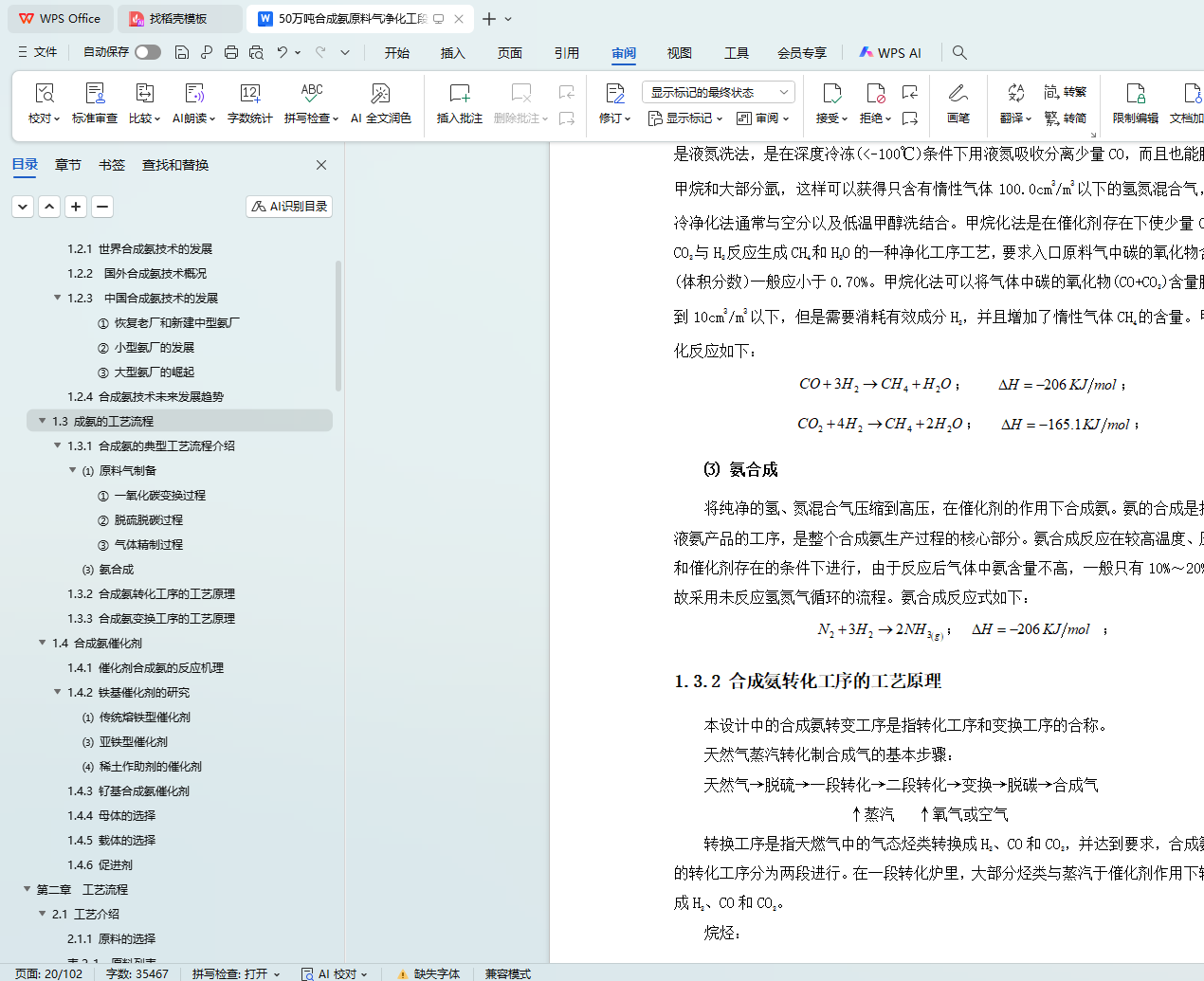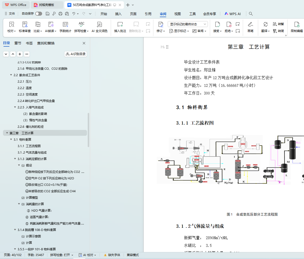 设计综述部分主要阐述了国内外合成氨工业的现状和发展趋势,以及工艺流程。
