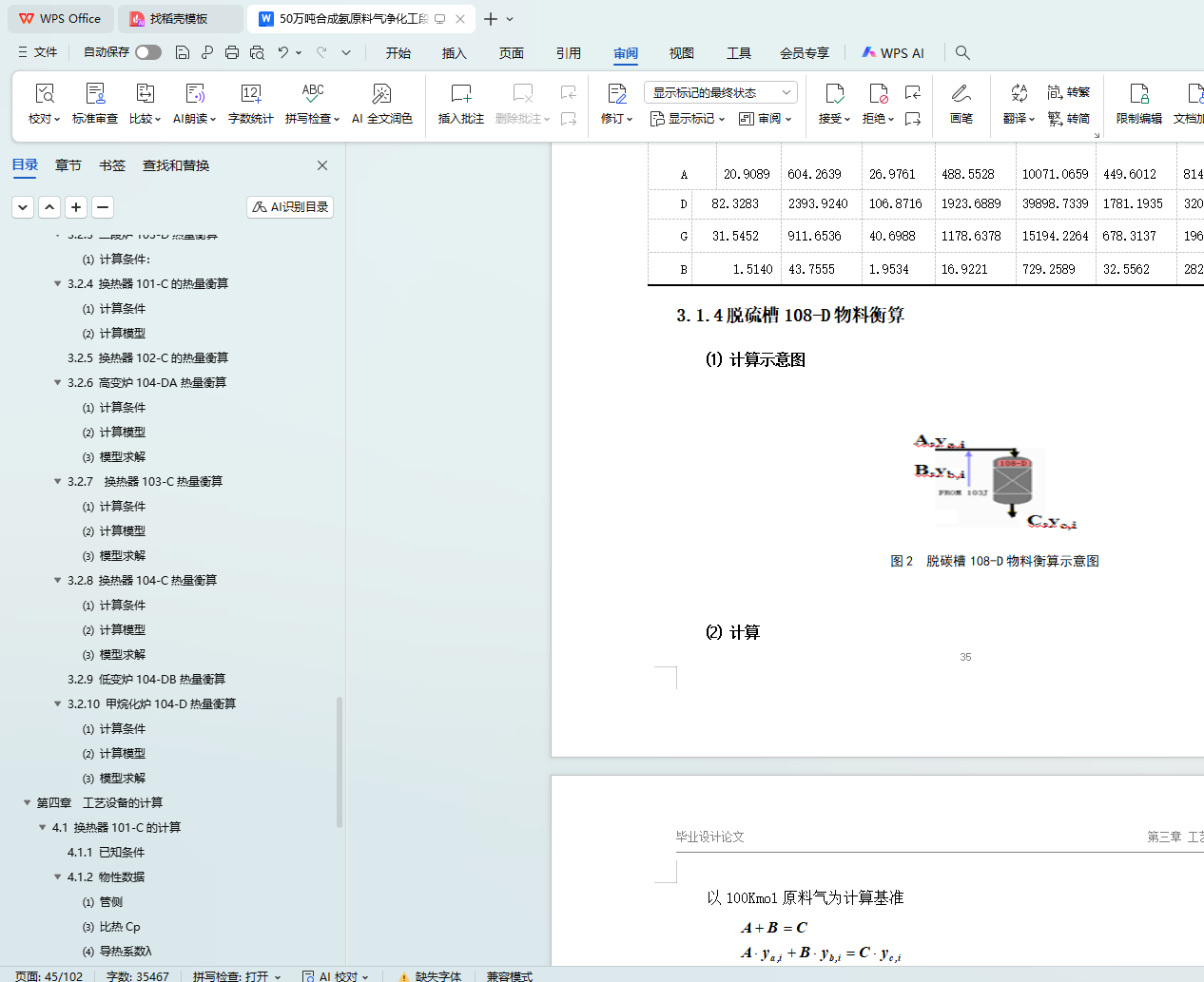 3.1.11 甲烷化炉101-D的物料衡算
