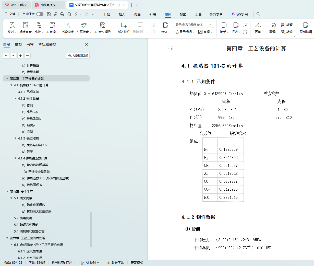 3.2.9 低变炉104-DB热量衡算