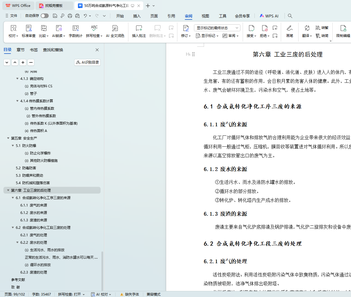6.2 合成氨转化净化工段三废的处理