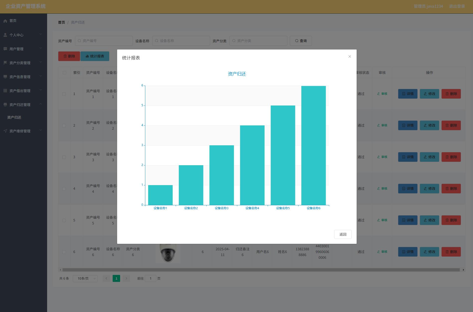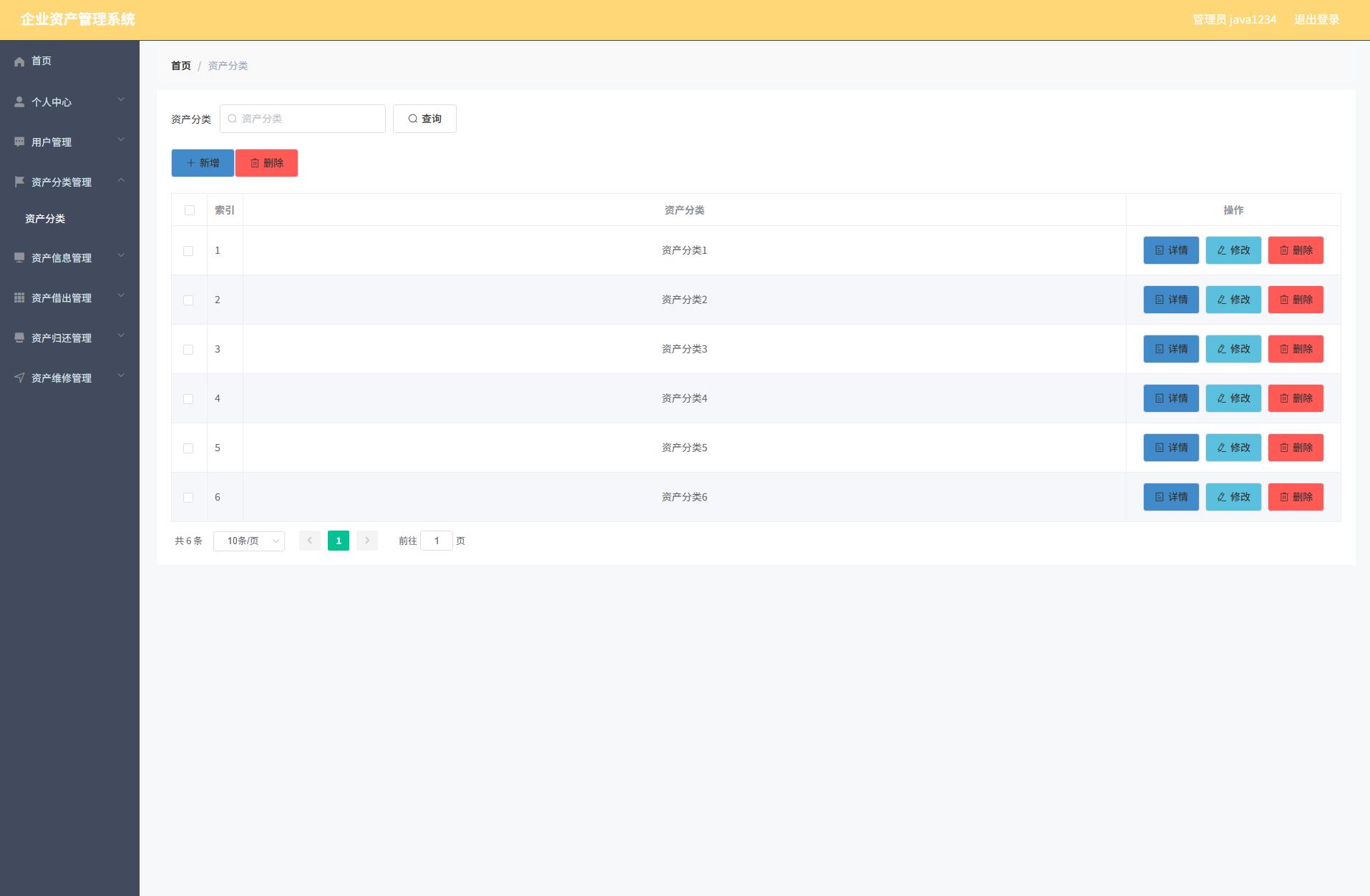 The corporate asset management system administrator functions include personal center, user management, asset classification management, asset information management, asset loan management, asset return management, and asset maintenance management. Users can lend and return assets. So it has a certain practicability.