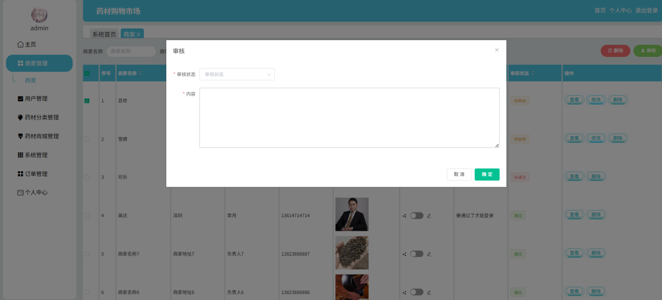 In the early stage of development, through in-depth research on the user needs o, a full featured module system was designed, including login, user management, merchant management, medicinal materials classification, order management, notification announcements, the medicinal materials mall and personal center, etc. In addition, according to the actual needs and responsibilities of different roles, a differentiated role login mechanism was reasonably constructed, and permissions were precisely allocated. By virtue of the precise control of the access rights of each role to the functional modules, not only has the data security been significantly enhanced, but also the maintainability of the system has been effectively improved, laying a solid foundation for the efficient and stable operation of the medicinal materials shopping market.
