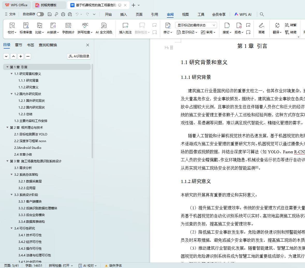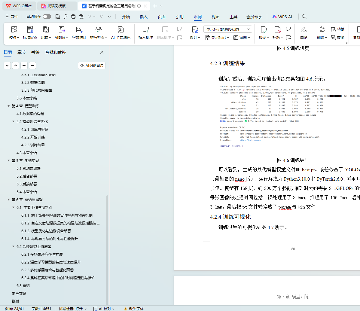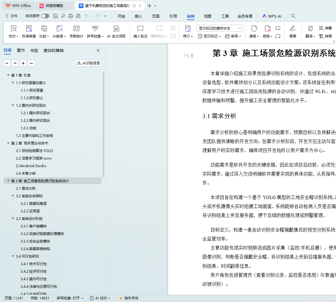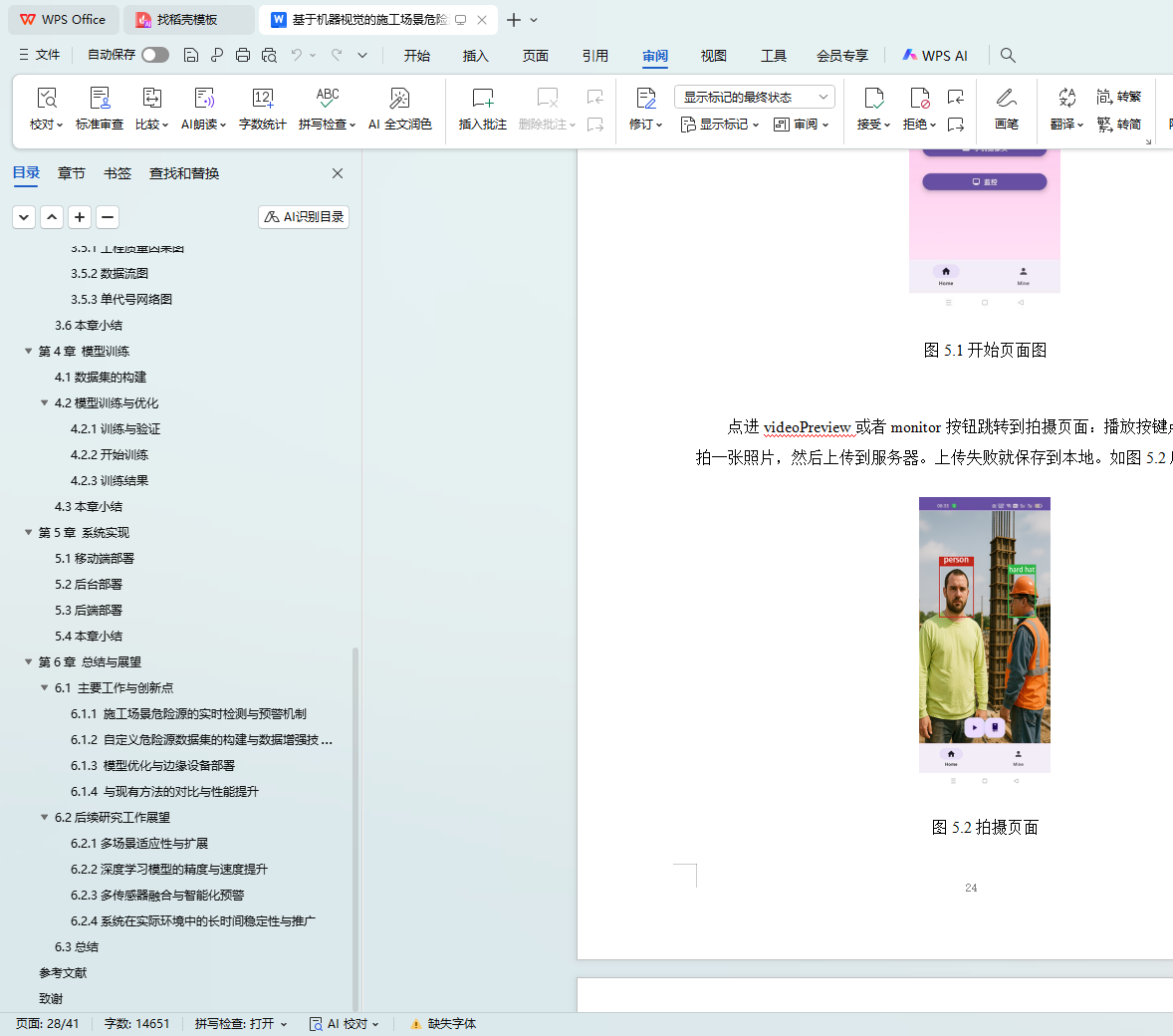 最后,本论文总结了系统的创新点和不足之处,并对后续研究进行了展望。未来的研究将重点在于扩展系统的多场景适应性、提高检测精度和智能化水平,并在实际施工现场中进行广泛应用,以进一步提升建筑施工的安全性和效率。