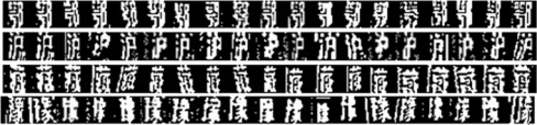 制作方法:从网络下载一个车牌汉字图片集,经过筛选、阈值操作后归一化为24×24的图片,经过程序随机加入缩放、平移、旋转、噪声扩充样本。