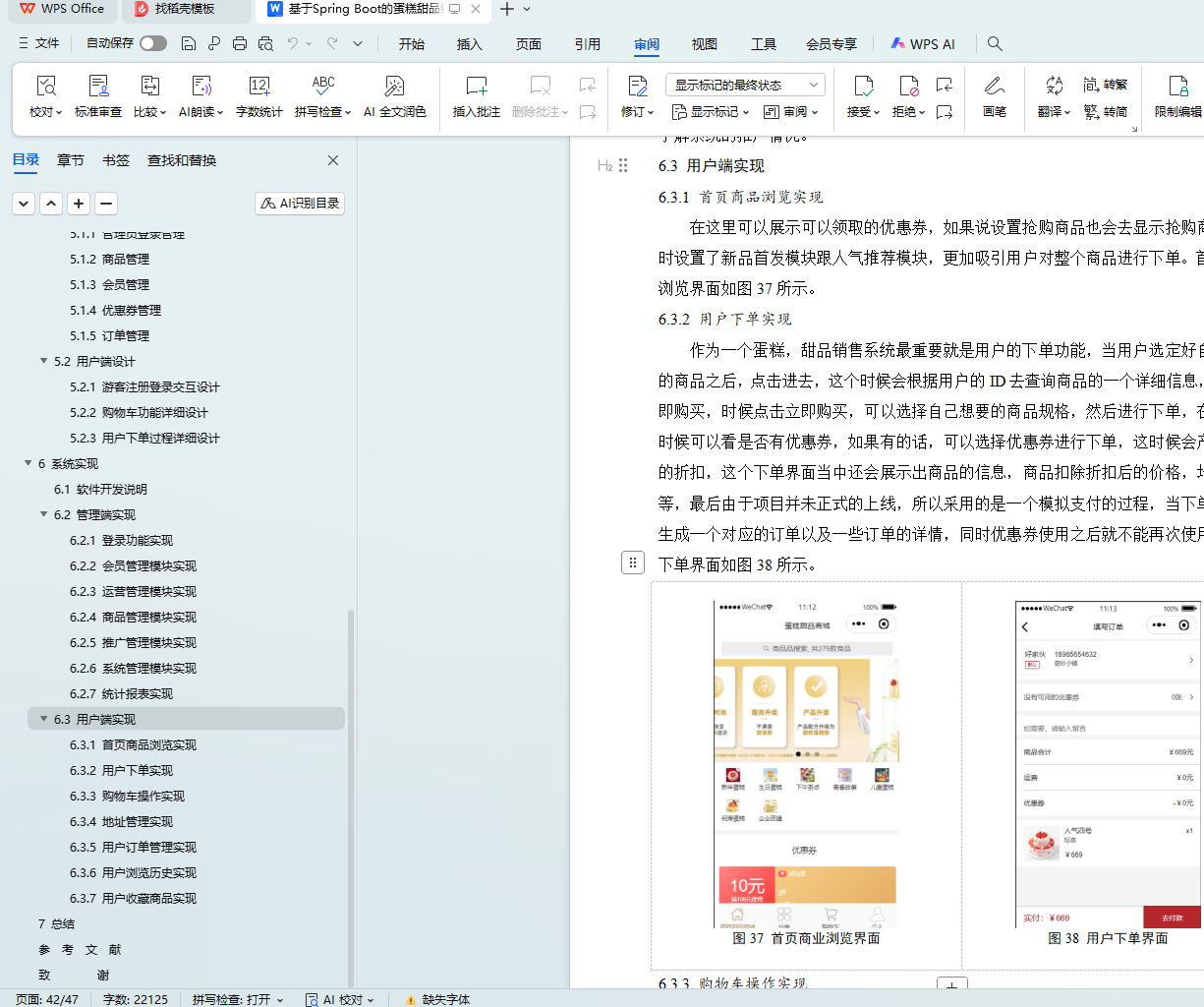 With the growth of the country's economy and the improvement of the quality of life, people's demand for cakes and desserts has gone beyond the material level and reflects more spiritual pursuits. However, traditional shopping requires customers to pick and purchase in person, which is time-consuming and difficult to meet personalized needs. Merchants face fierce competition in the market and inefficient manual order processing, which limits the quality and competitiveness of their services. To this end, this project has developed a cake dessert sales system based on the Spring Boot framework, which is built with the Vue framework at the front end and relies on Spring Boot at the back end to ensure the stability and scalability of the system. The user interface is realized through the WeChat applet, and the database uses MySQL for data storage, which is a very safe and efficient storage method, which can store a large amount of user data, and the management background includes functions such as member management, order management, evaluation management and commodity management to help merchants optimize business processes. User-side users can browse goods, collect goods, receive coupons, and place orders for goods, so that they can buy cakes and desserts online without leaving home, providing a convenient and personalized shopping experience.