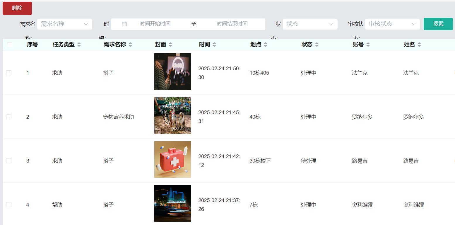 Keywords: community mutual aid; Service publishing and requesting; Spring Boot; Vue; MySQL