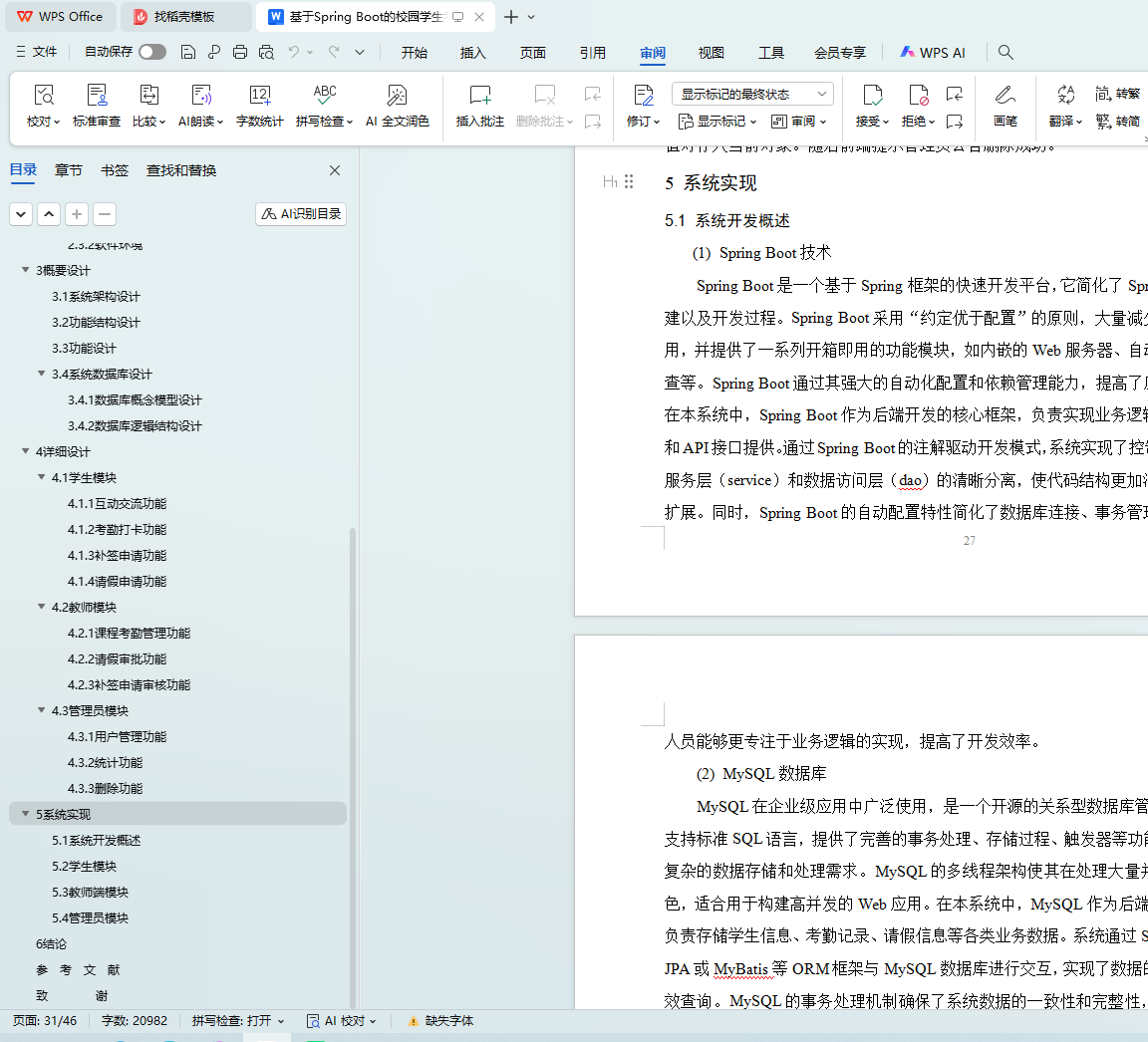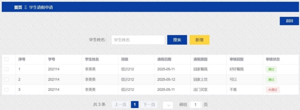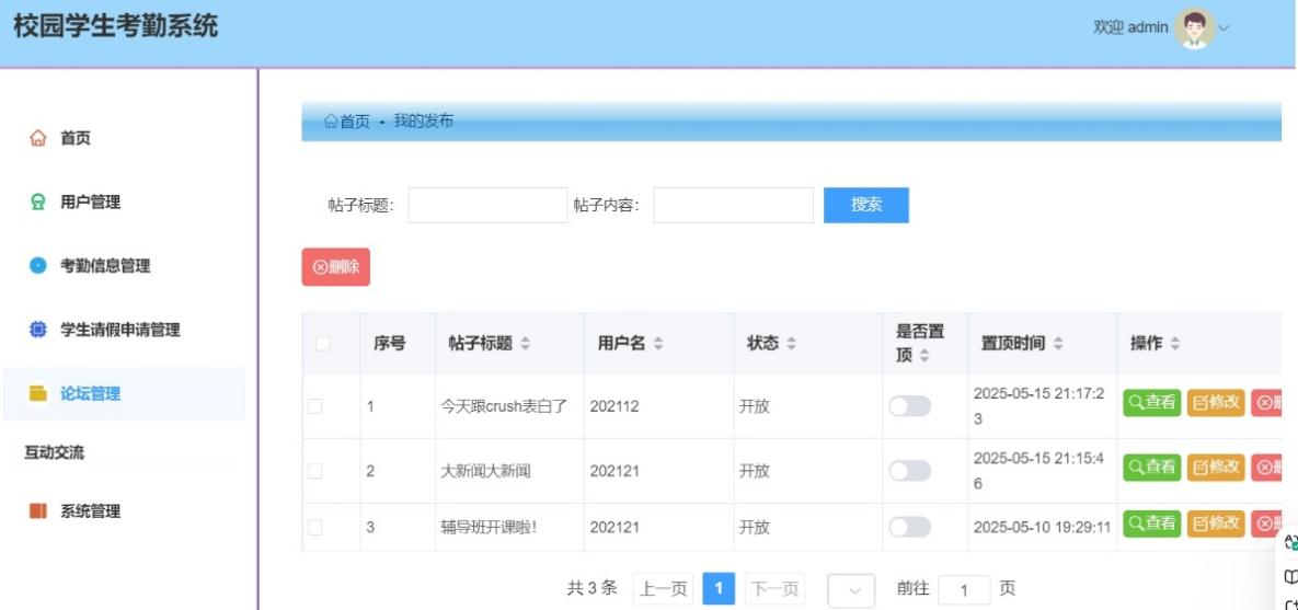 学生考勤管理作为高校信息化建设的重要组成部分,整合了身份识别、出入管理、考勤管理等多种功能。然而,传统系统存在功能单一、数据分散、信息孤岛等问题,严重制约了学校管理效率的提升。针对这些问题,本文基于后端Spring Boot框架和前端Vue技术,设计并实现了一套校园学生考勤系统。系统采用前后端分离架构,后端使用Spring Boot框架构建RESTful API,前端基于Vue实现交互界面,数据库采用MySQL存储数据。系统主要实现了三种角色选择登录:学生可进行互动交流、考勤打卡、请假申请等操作;教师可进行互动交流、管理学生考勤、请假管理等功能;管理员可进行用户管理、考勤信息管理、学生请假申请管理、论坛管理、系统管理等操作。系统测试结果表明,该考勤系统具有良好的稳定性和易用性,各功能模块运行正常,能够满足校园考勤管理的实际需求,为高校智慧校园建设提供了有益探索。