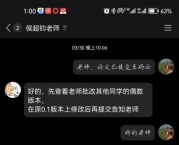 侯老师指出修改论文初稿0.1中与其他同学出现的相似问题。例如,在论文结构上存在逻辑层次不清晰、章节过渡生硬的问题。侯老师通过对比不同初稿中的相似错误,讲解了如何优化论文框架、统一格式标准,并强调了学术写作中独立思考与严谨论证的重要性。