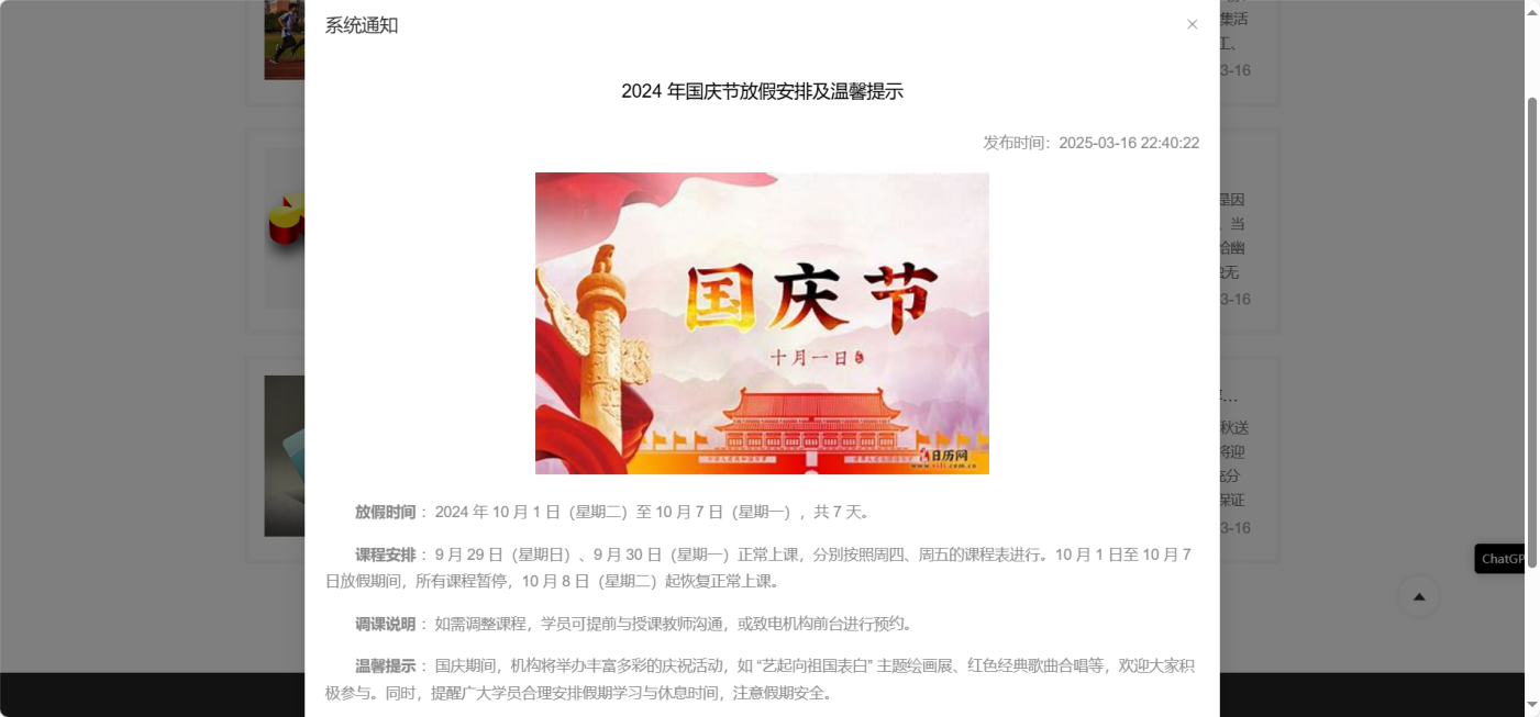 随着社会的持续进步,艺术培训机构的业务日益复杂,传统信息管理方式已难以满足其高效运营的需求。为了有效地运营管理艺术培训机构,本文设计了一个艺术培训机构信息管理系统,采用Spring Boot进行后端开发,采用MySQL作为数据库。系统管理员端设计了用户管理、课程信息管理、课表信息管理、作业管理、系统通知管理、网站简介管理、轮播图管理等功能模块,实现对艺术培训机构全方位的管控与信息维护;学生端涵盖了个人信息管理、课程信息浏览、考勤信息查询、课表信息查询、系统通知查看、作业管理等功能,满足学生日常学习与信息获取需求;教师端则包含个人信息管理、课程管理、学生信息管理、作业管理、课表信息管理、系统通知查看等功能,助力教师高效开展教学工作与学生管理。系统的实现有效艺术培训机构信息管理的效率与准确性,促进了机构的规范化与专业化发展。