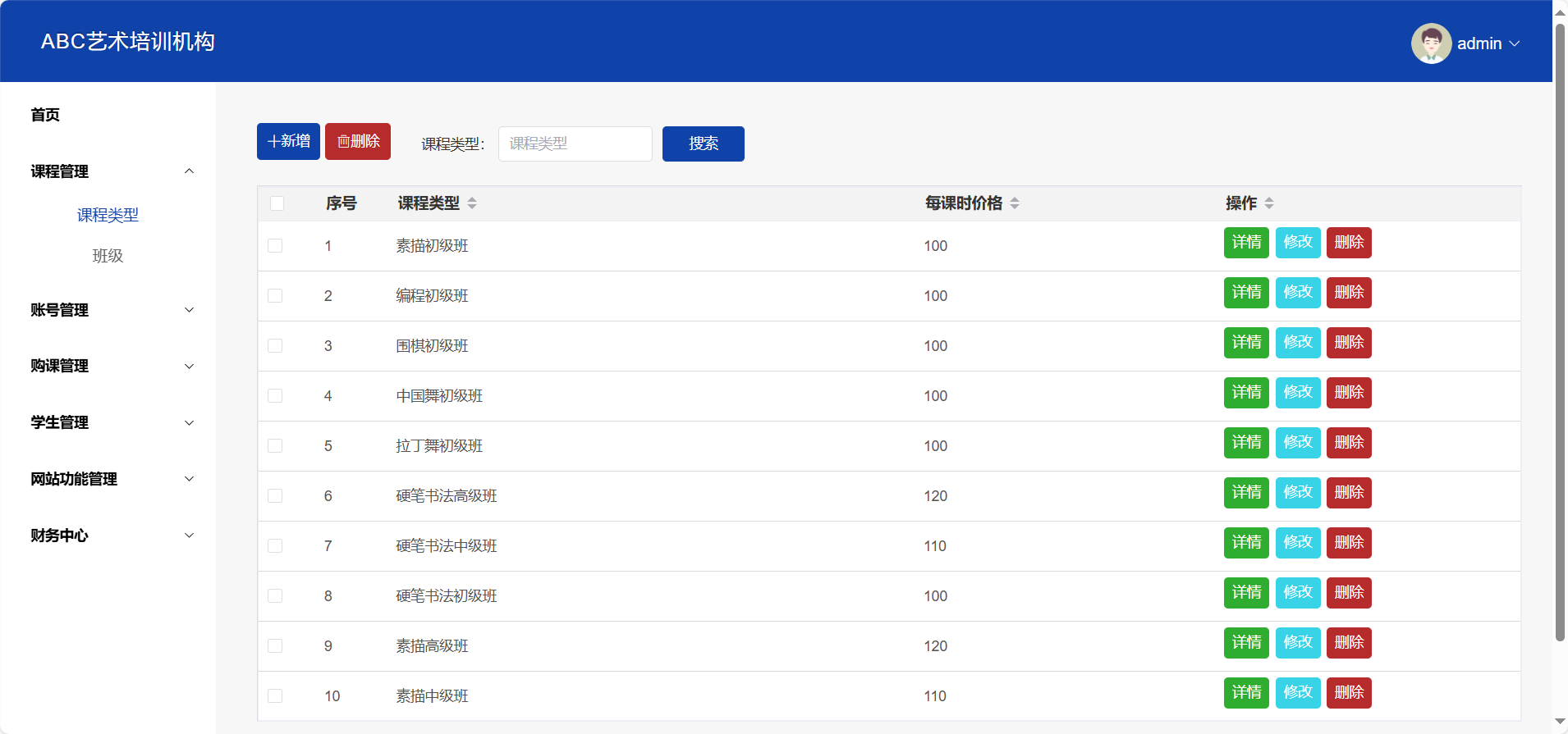 Keywords: art training institution; information management; Java; Spring Boot; MySQL