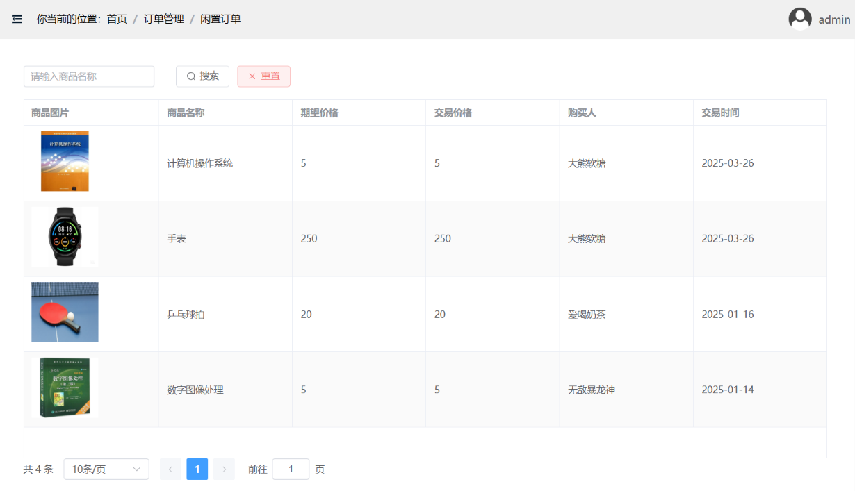 With the continuous expansion of university enrollment, the vast quantities of study materials and everyday items generated by students have become a vital resource for the campus second-hand market. However, traditional offline trading methods often suffer from poor information flow and inadequate transaction security. To address this problem, this thesis presents the design and implementation of a campus second-hand goods trading system. The system utilizes the uni-app framework to develop a mobile mini-program, with a backend built on Spring Boot that provides RESTful APIs, using IntelliJ IDEA as the development tool and MySQL as the database. The platform is divided into two main modules: a mobile client and a backend management module. The mobile client offers features such as user login and registration, product browsing, posting of buying and selling requests, online communication, product detail viewing, reporting, and personal profile management; while the backend module enables unified management of users, products, menus, and reports. Featuring a clean and visually appealing interface with simple operation and robust scalability, the system effectively meets the second-hand trading needs of students. By digitizing the trading process, it reduces transaction costs, enhances resource utilization, and promotes environmental protection and conservation awareness—thereby offering significant social value and strong potential for broader application.