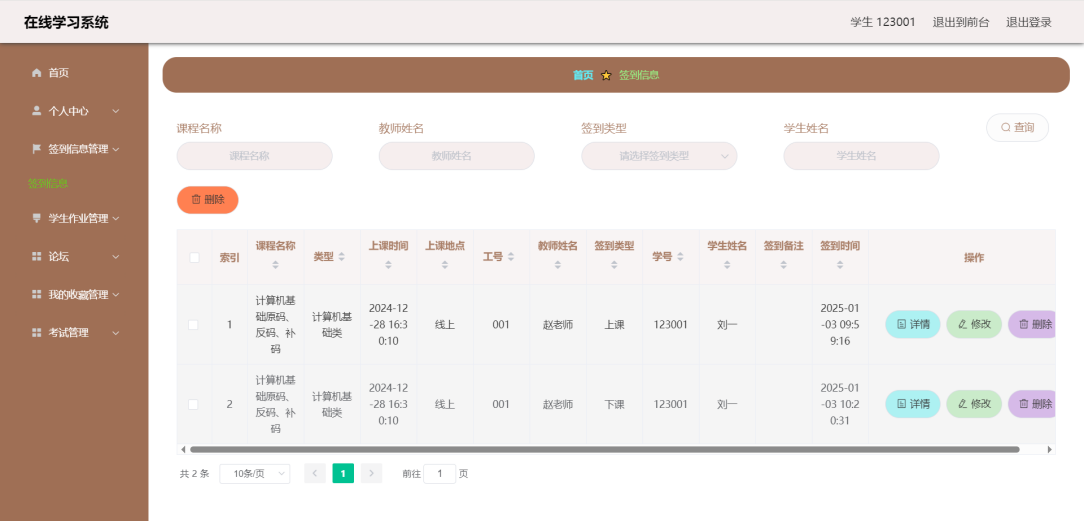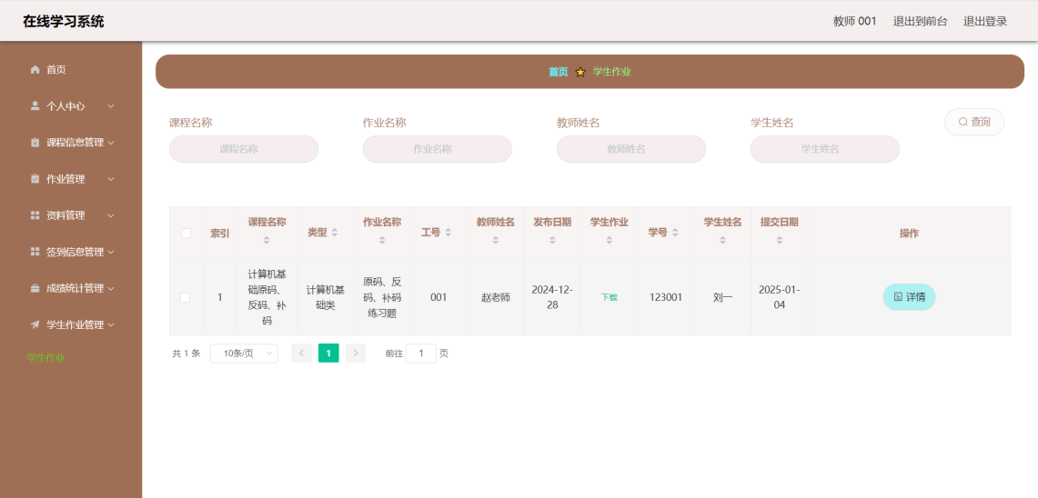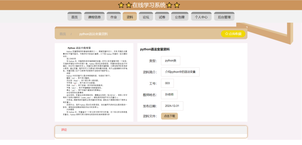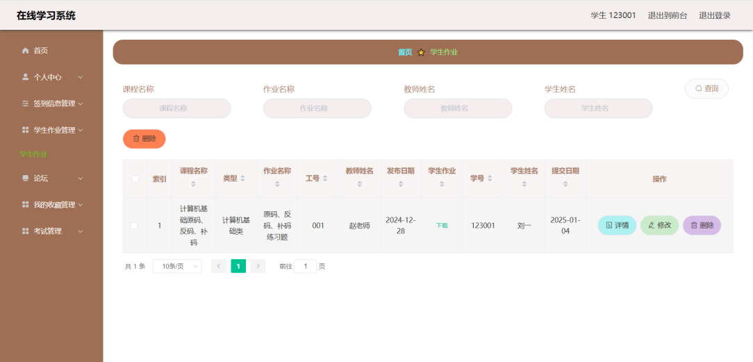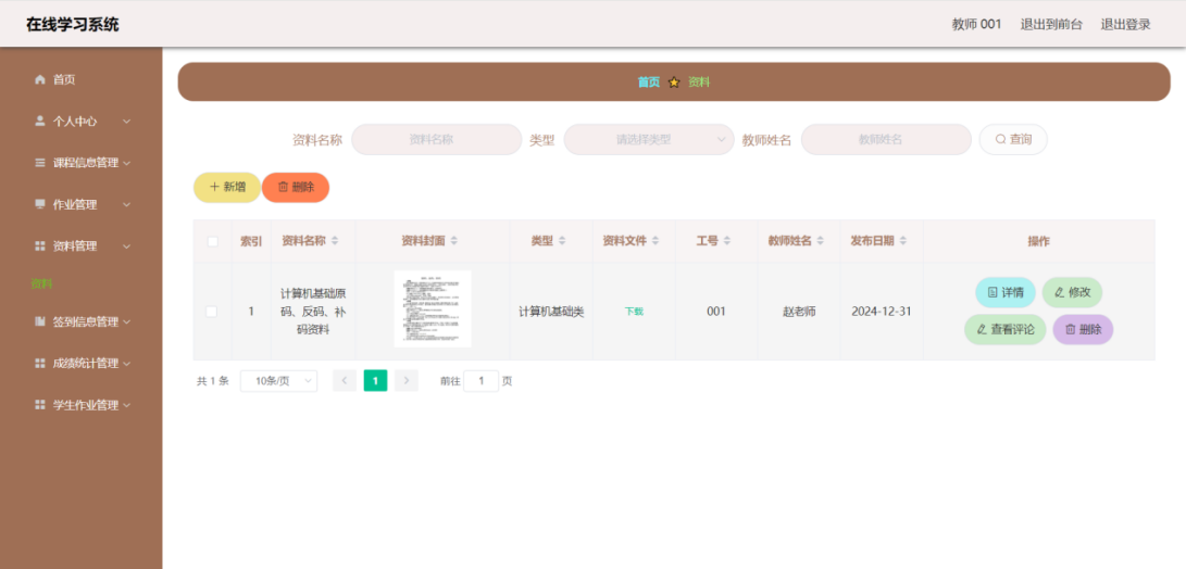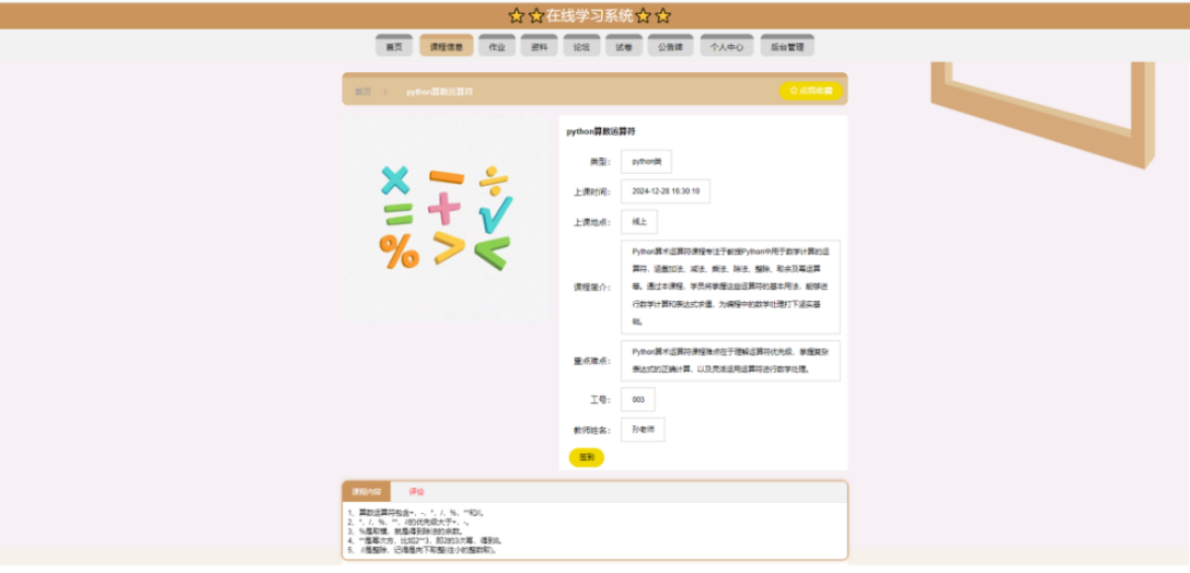 This article uses the SpringBoot framework as the core technology architecture, combined with MySQL database, to build a fully functional and compliant online learning system. The system implements core functional modules such as user registration and login, course selection and learning, homework submission and management, and grade analysis and statistics. Users include three roles: students, teachers, and administrators. Students can browse courses, select courses, post and view comments, modify personal information, etc. through the system; Teachers can post assignments, check student progress, participate in discussions, etc; Administrators are responsible for backend management work, such as user management, course video review, publishing, etc.