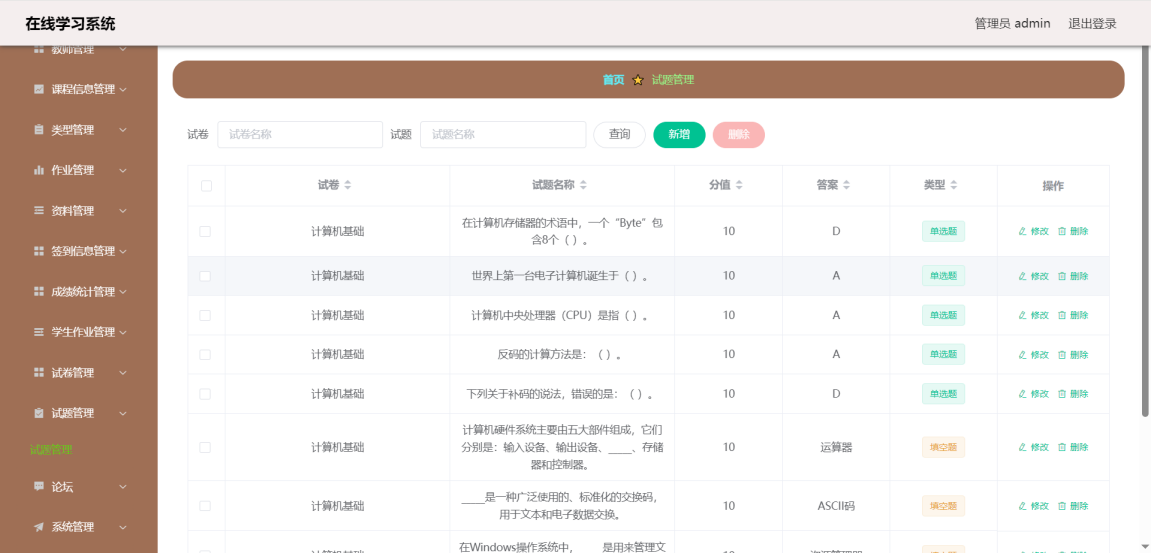 5.3.6 试题管理