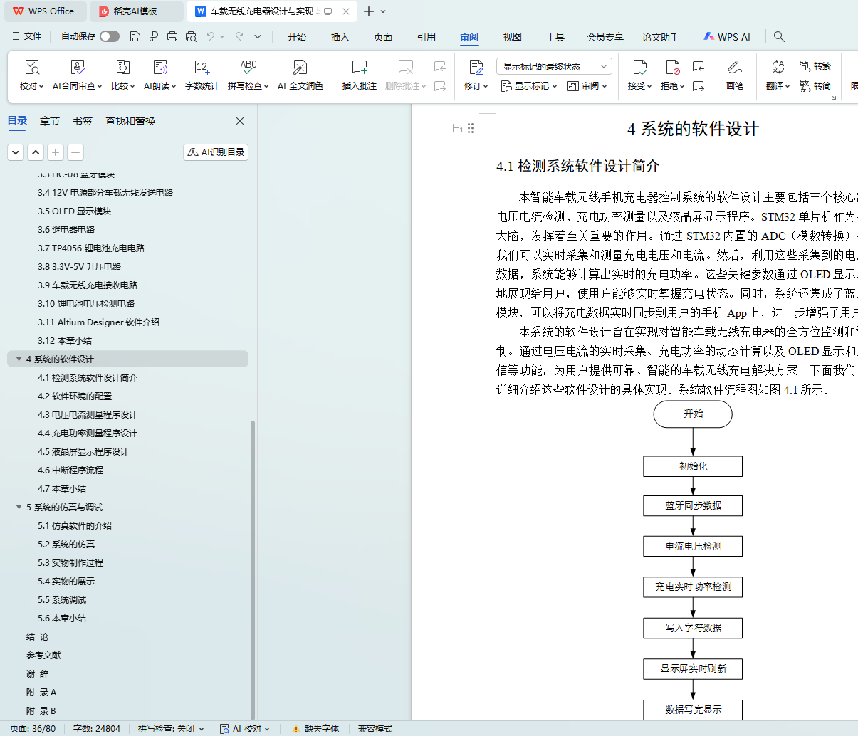本设计提出了一种基于STM32单片机的智能车载无线手机充电器设计方案。该系统集成了STM32F103单片机、OLED显示模块、电流电压检测模块、蓝牙模块等多个关键组件,实现了对手机车载无线充电的实时监控和远程控制。系统通过感应线圈实现车载无线充电功能,并集成多种保护措施确保充电过程的安全性。通过软硬件的协同工作,该系统为用户提供了智能、便捷、安全的车载无线充电体验。