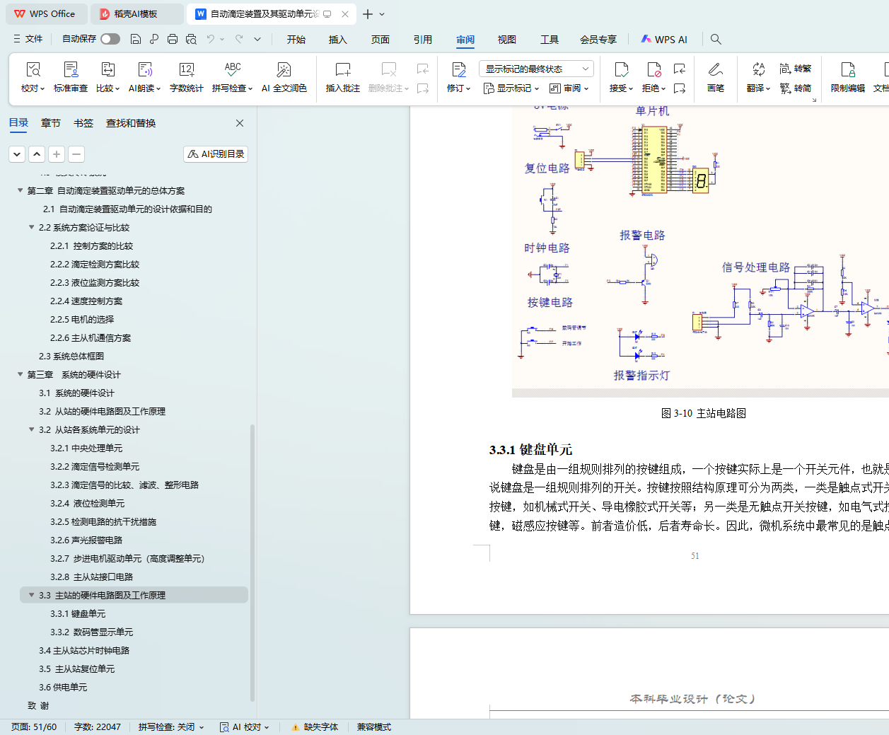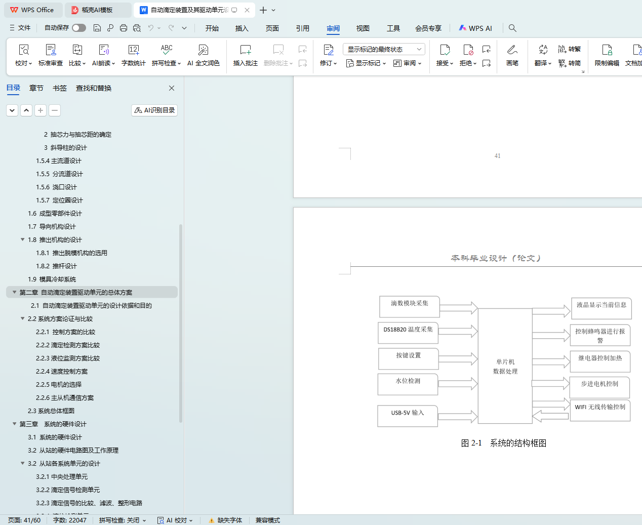 本文围绕自动滴定装置及其驱动单元设计展开研究。在自动滴定装置部分,首先进行制品材料选用分析,接着对装置进行测绘,并阐述成型设备选用,包括注塑机、模架的选择以及模具参数校核。随后拟定模具结构形式,涵盖型腔数量与排列方式确定、分型面选择、侧向分型与抽芯机构分析确定,以及主流道、分流道、浇口、定位圈设计,还涉及成型零部件、导向机构、推出机构和模具冷却系统设计。在自动滴定装置驱动单元部分,明确设计依据和目的,通过系统方案论证与比较,确定控制、滴定检测、液位监测、速度控制方案,选择合适电机并确定主从机通信方案,给出系统总体框图。在系统硬件设计方面,分别阐述从站和主站的硬件电路图及工作原理,详细介绍从站各系统单元设计,如中央处理单元、滴定信号检测单元等,还涉及主从站芯片时钟电路、复位单元和供电单元设计。该设计旨在实现自动滴定装置的高效、精准运行,为相关领域提供一种可行的解决方案。