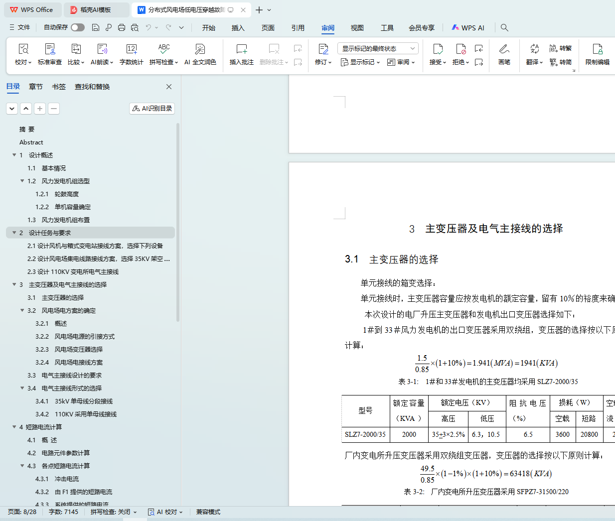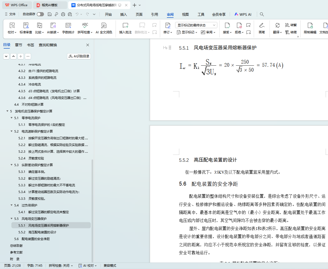 随着人类对清洁、可持续能源需求的日益增长,风力发电作为重要的可再生能源发电方式受到广泛关注。我国在风力发电技术领域投入大量资源,取得显著成果,极大提升了风力发电的效率与可靠性。本毕业设计以分布式风电场为研究对象,该风电场装机规模达 48MW,配备 24 台 2MW 风力发电机组。采用 1 回 110kV 线路 T 接鲤鱼井~水湾 110kV 线路实现并网,风力发电机—箱变采用一机一变单元接线方式,经多级电压变换后汇至 110kV 升压站。本设计聚焦于分布式风电场低电压穿越故障建模与仿真,同时涵盖电气一次部分相关设计,如同组同学完成的电气一次主接线方案确定、短路电流计算、电气设备选型及主接线图绘制等,以及线路和主变压器微机保护配置、短路电流计算、保护整定计算,并绘制相应保护配置图与接线图。通过本设计,为分布式风电场在低电压穿越故障分析及保护配置方面提供理论依据与实践参考。