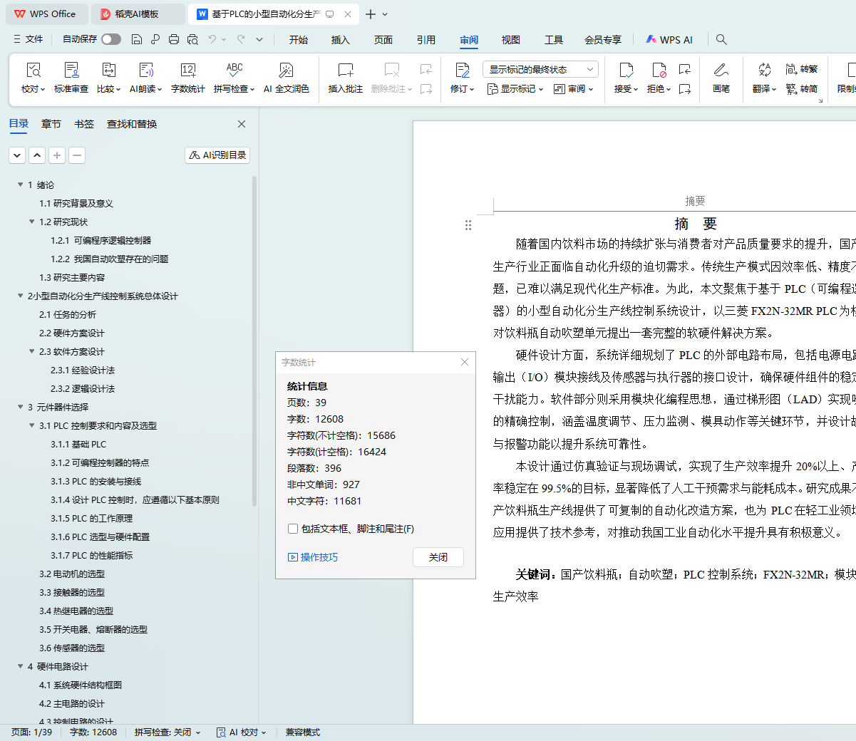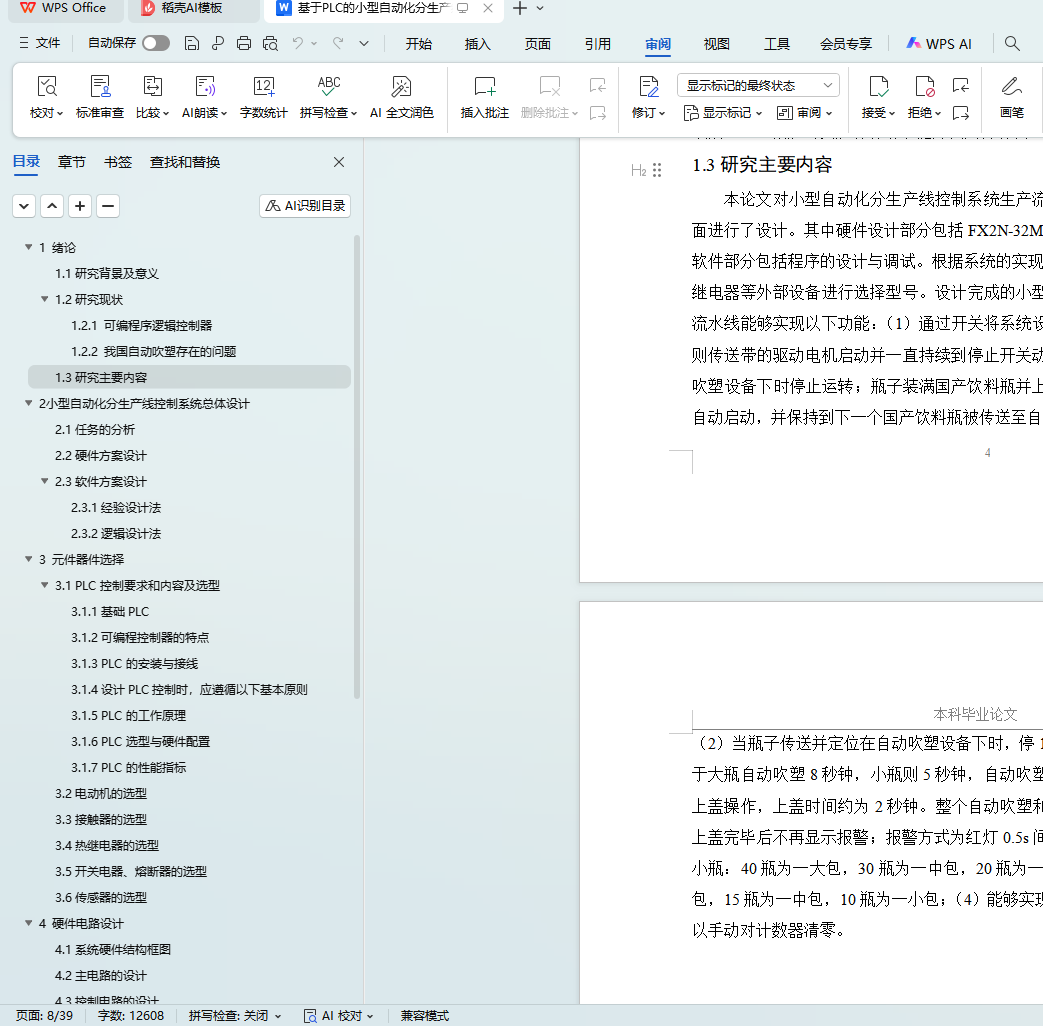 本设计通过仿真验证与现场调试,实现了生产效率提升20%以上、产品合格率稳定在99.5%的目标,显著降低了人工干预需求与能耗成本。研究成果不仅为国产饮料瓶生产线提供了可复制的自动化改造方案,也为PLC在轻工业领域的推广应用提供了技术参考,对推动我国工业自动化水平提升具有积极意义。