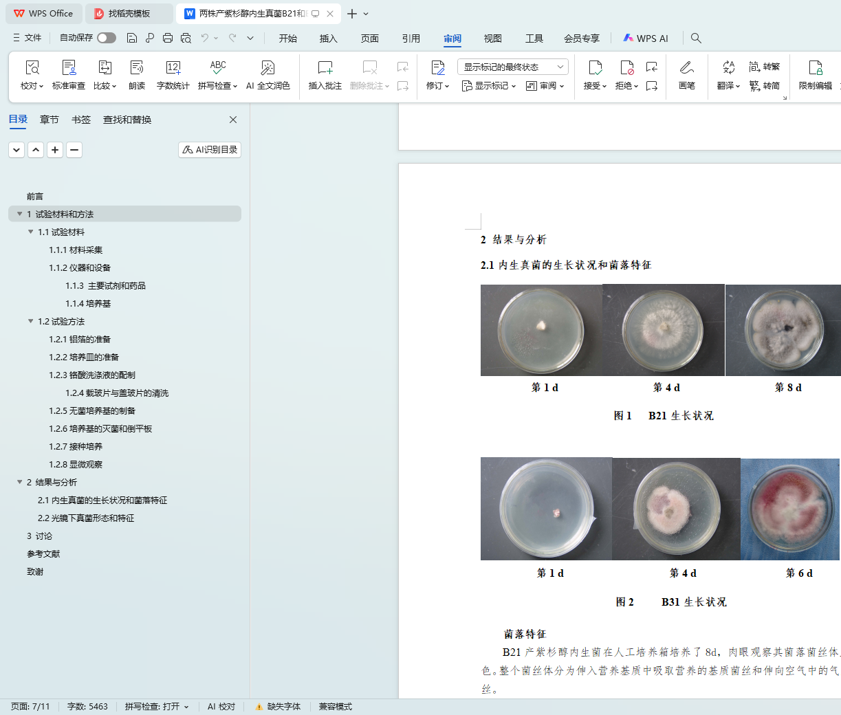 两株产紫杉醇内生真菌B21和B31形态的初步鉴定