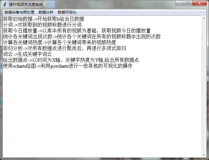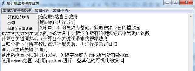 本系统采用文件存储方式,使用Python语言编程,基于大数据环境、k-means聚类算法及多项式回归,以vscode为开发工具开发的提升视频关注度系统。