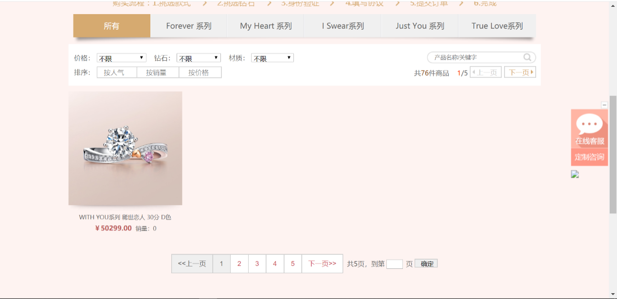 目前,在实际生活中,依托在其他网购平台的钻戒卖方所提供的商品质量与材质都难以得到保障,即便各大平台加大了打假力度,但是依然存在隐患。笔者建立了网上钻戒商城,此商城具有简洁的页面,选购起来也非常的方便,并且此商城能根据每个用户的喜好进行分类以及推荐,对消费者来说,即放心又省心并且还省力,又确保了商品的真实性!