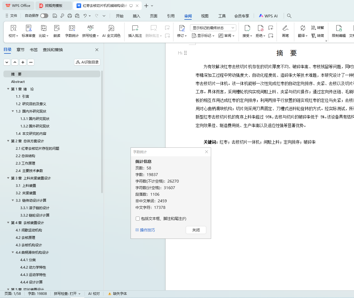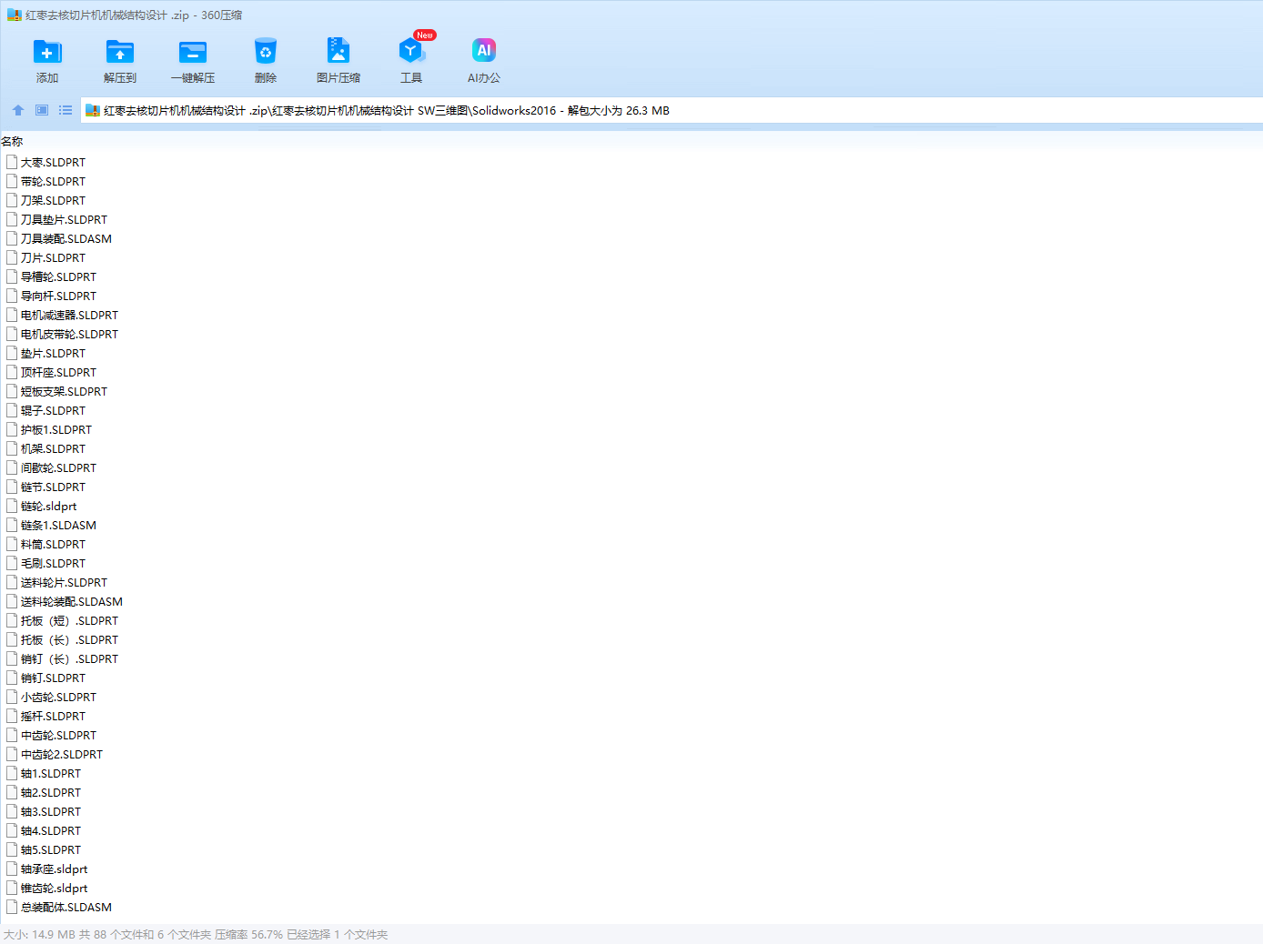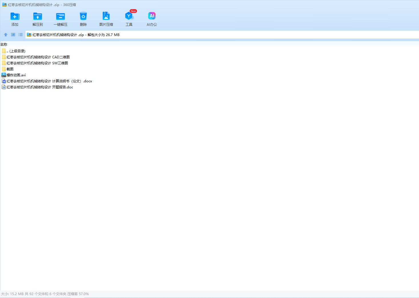 Key words: Red jujubes; Integrated pitting and slicing machine; Intermittent feeding; Directional sorting; Breakage rate