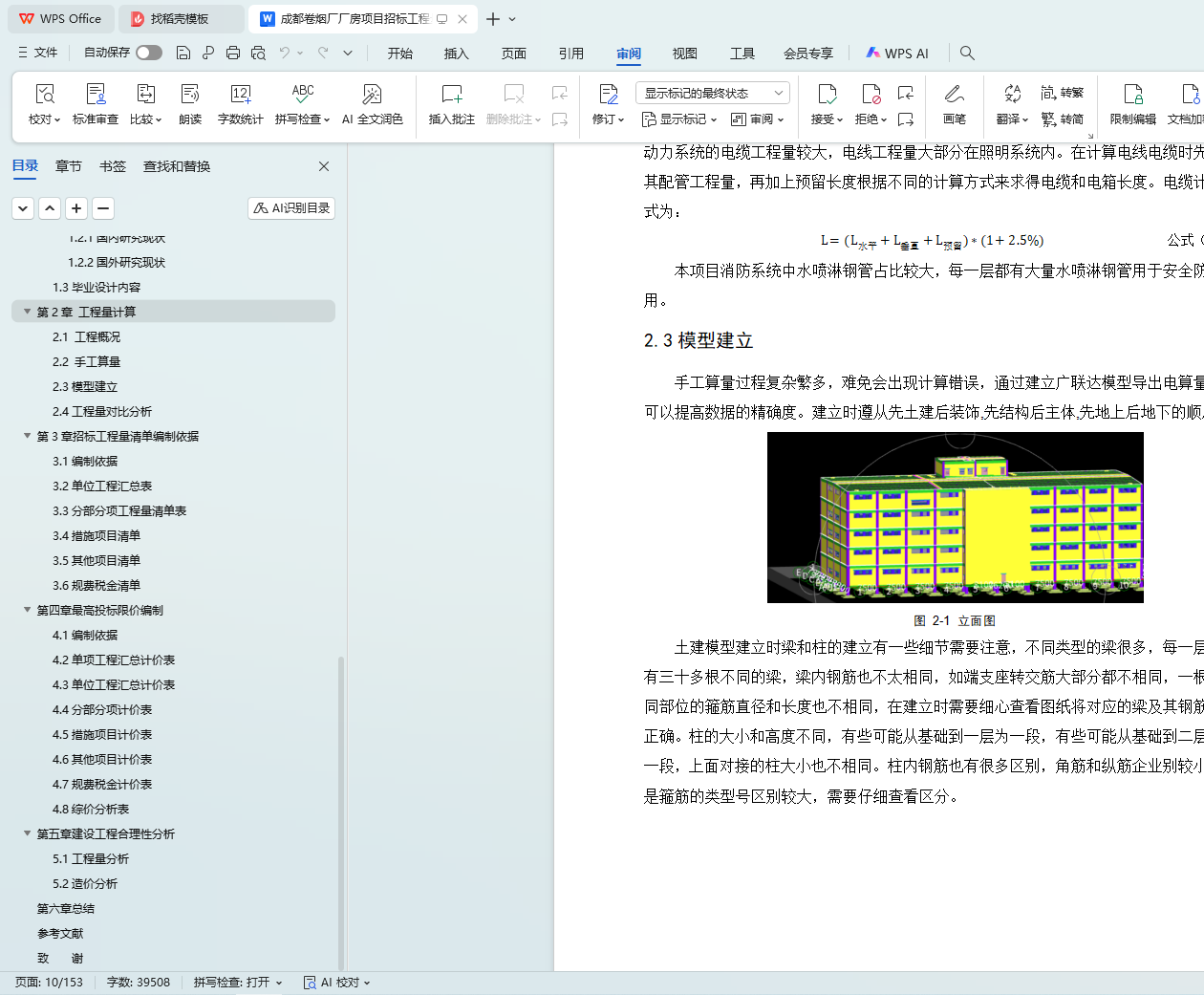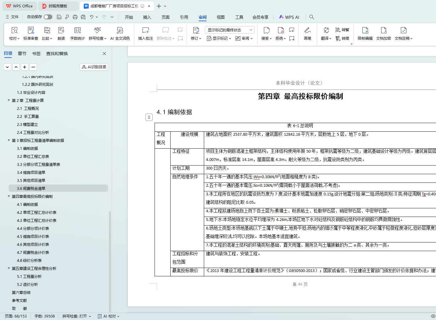 With the rapid development of Chinese construction industry in recent years, in order to meet the needs of bidding pricing, the implementation of bill of quantities pricing has become an important measure for the reform of the construction industry contract pricing, the use of bill of quantities pricing can reflect some costs of the construction projects, so that it is easier for enterprises to quote prices by themselves and maintain the fair competition environment. Based on the plant project of Chengdu Cigarette Factory as the research basis, according to the current bidding situation and the actual conditions of the plant project, Guanglian model establishment, manual calculation, comparative analysis of manual calculation, and compilation of bidding quantity list and maximum bid limit price. This topic is the study of bidding quantity list and maximum bid limit price. Through this graduation project in the process of Chengdu cigarette factory plant project design, strengthen the modeling and calculation ability, improve the understanding and application of the bidding bill of quantities and the maximum bid limit price, let oneself in this process will be theoretical knowledge in practice, enhance the hands-on ability, familiar with the preparation of bidding bill of quantities and the maximum bid limit price of the whole process.