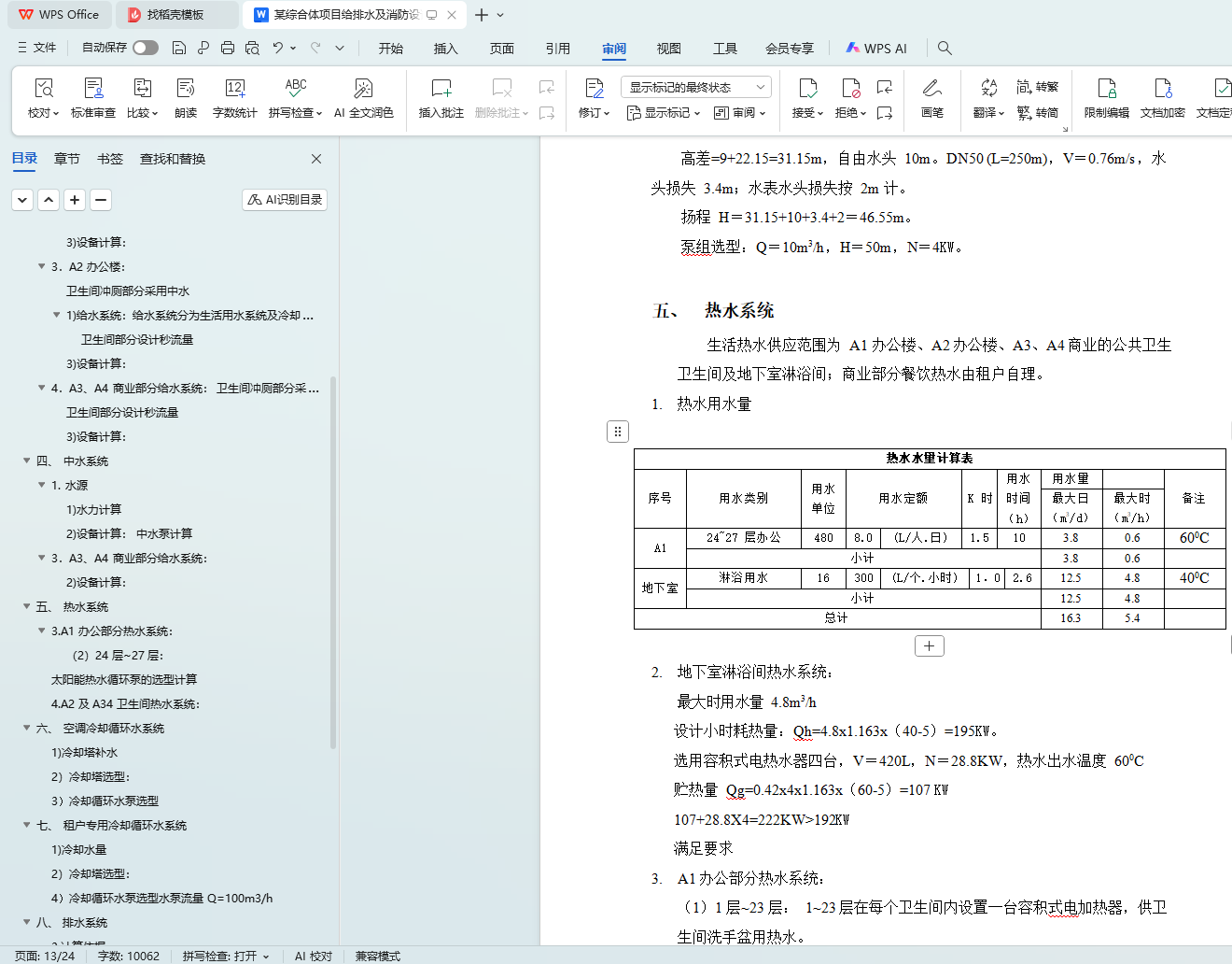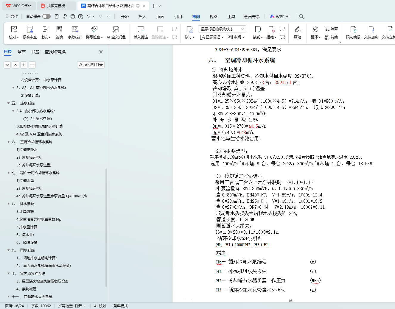 1) 给水系统:给水系统分为生活用水系统及冷却塔给水系统 2 各部分