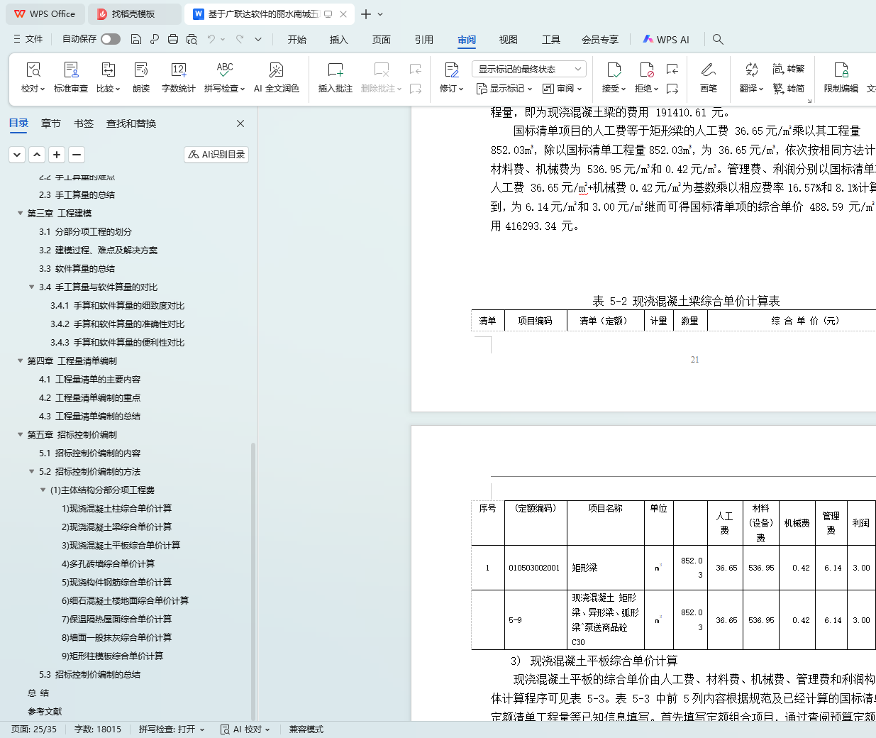 During the research process, based on the construction drawings and structural construction drawings of the project, and strictly in accordance with relevant specifications and quota requirements, Guanglianda GTJ2025 calculation software was used to calculate the engineering quantities, and the calculation results were systematically sorted and summarized. Subsequently, with the help of Guanglianda cloud pricing software 2022, the preparation of the engineering quantity list and the setting of corresponding quotas were completed.