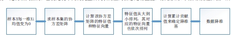 主成分分析 (principal component analysis PCA), 通过正交变换将一组可能存在相关性的变華转换成一组线性不相关的变華,转换之后的这组变華叫做主成分。常用千提取数据主要特征变華,常用千高维数据的降维。在用统计分析的方法研究多变華的时候,变華的个数太多,增加了复杂性,由千变華之间是有一定的相关性的,也就是说不同的变華所代表的全局信息是有重叠,有冗余的。其算法流程如图 1所示:
