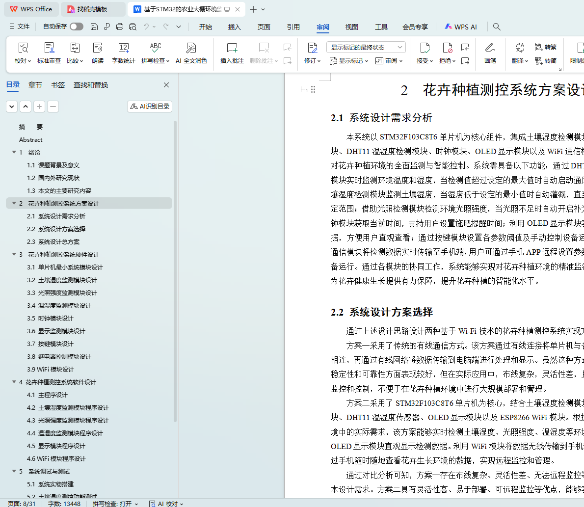 研究结果表明,该系统能够准确、实时地监测花卉种植环境的相关参数,并通过WiFi实现数据的远程传输与监控。这不仅提高了花卉种植的精细化管理水平,还为花卉产业的智能化发展提供了新的思路和技术支持。