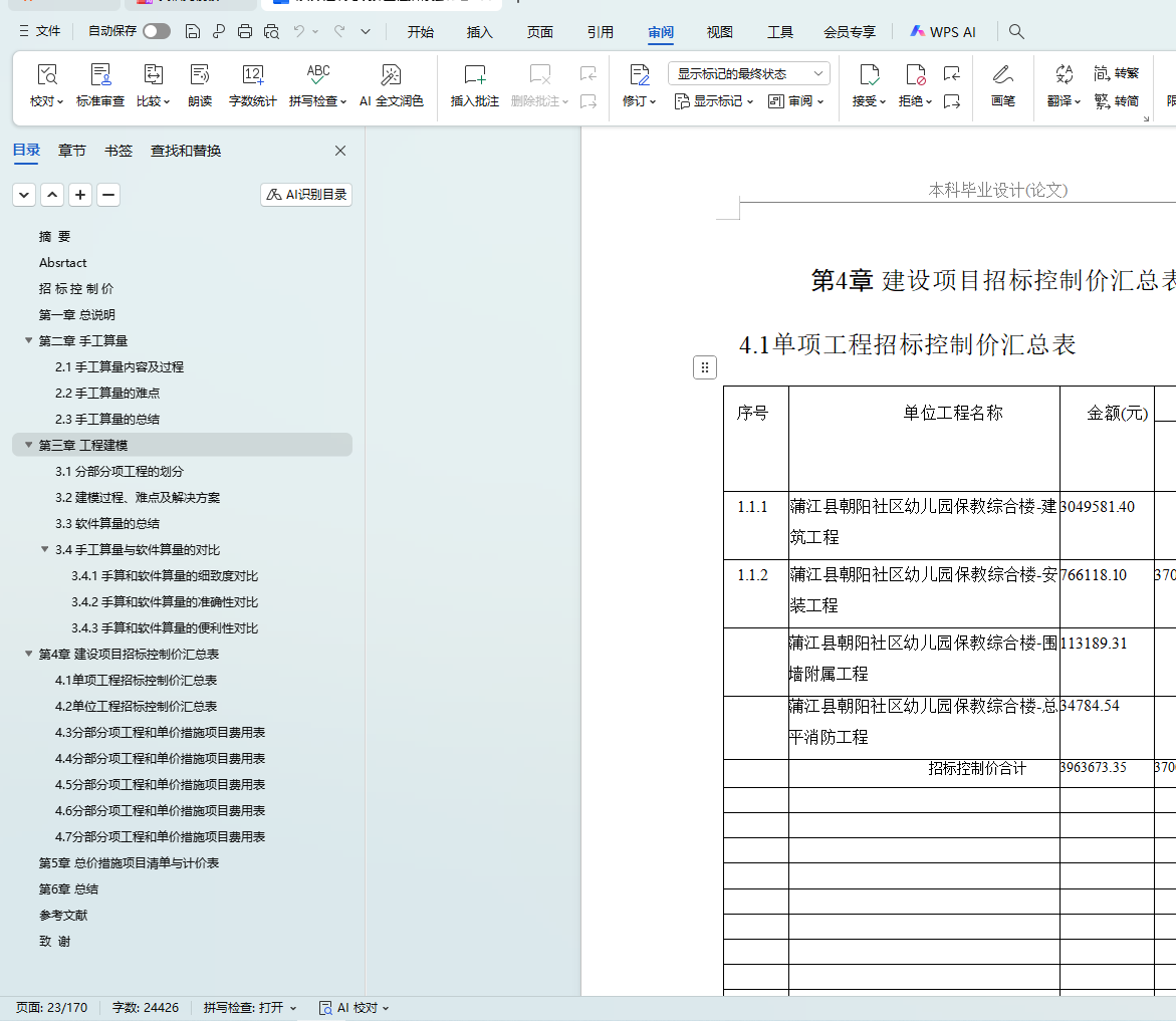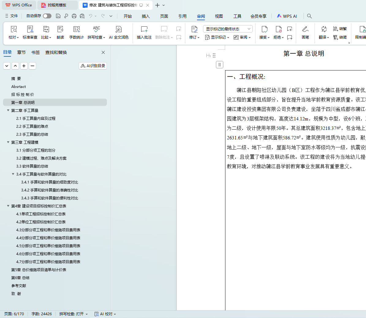 本文以蒲江县学前教育优质普惠建设工程中的朝阳社区幼儿园(B区)为例,详细阐述了建筑与装饰工程招标控制价的编制过程。该项目为成都蒲江建设投资集团有限公司投资建设的二级幼儿园工程,建筑高度14.12m,3层框架结构,总建筑面积3218.37㎡。在编制招标控制价时,充分考虑了工程的具体特点,包括建筑使用性质、耐火等级、防水等级、结构类型以及抗震设防要求等关键因素。通过严谨的市场调研、合理的计价依据选取以及精确的工程量计算,确保了招标控制价的准确性和合理性,为工程的顺利招标和后续建设提供了有力的经济保障。