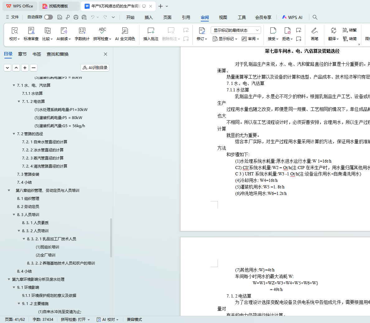 calories balance in the process of dairy, device selection, water-electricity-steam balance, labor
