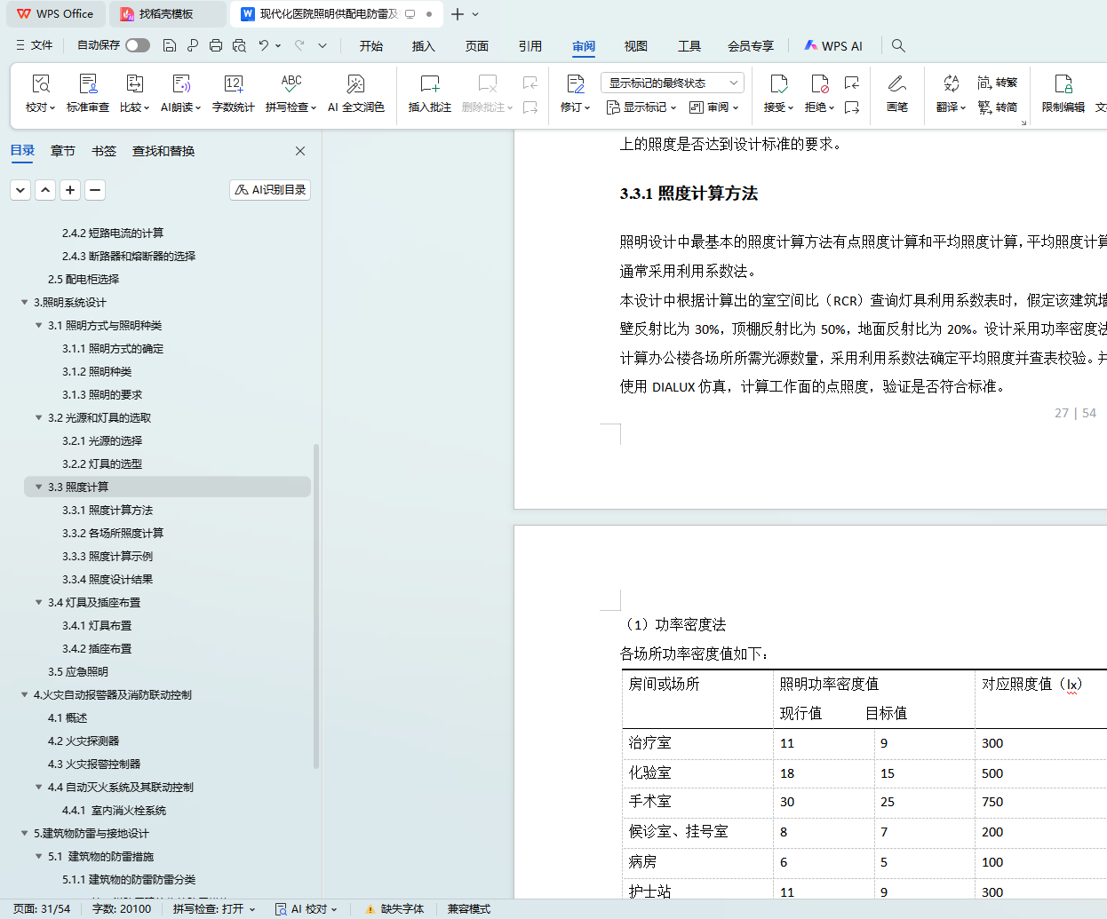 3.3.2各场所照度计算